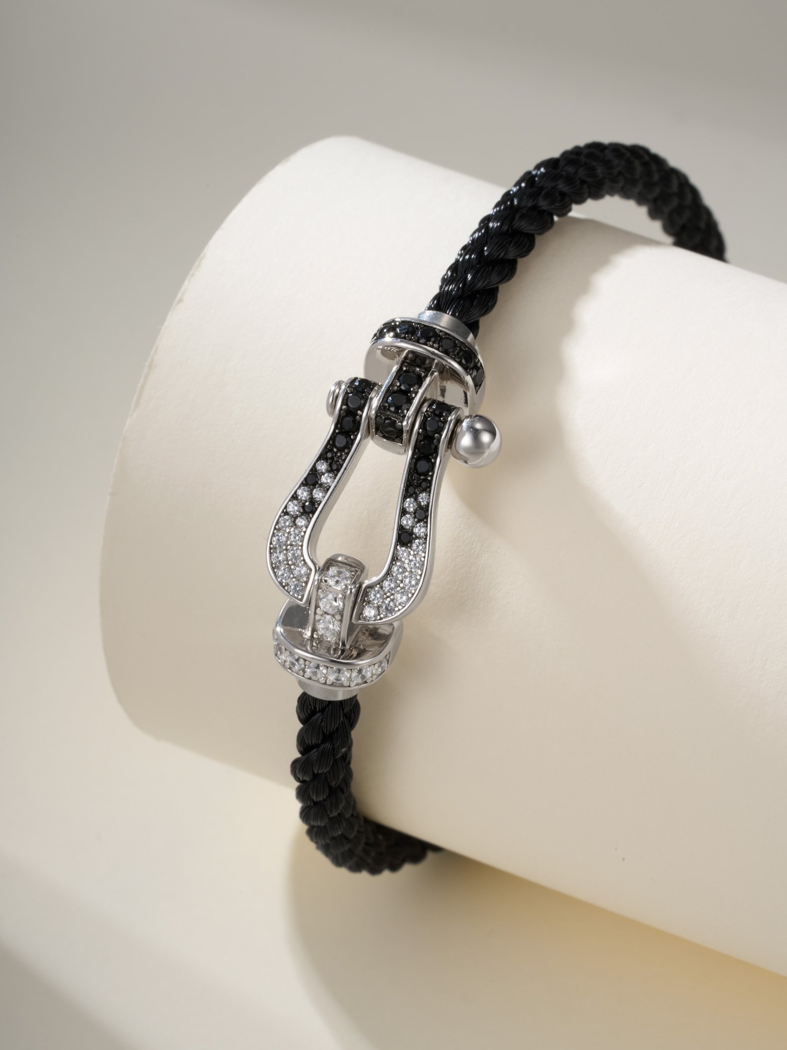 10 degree full diamond gradient black buckle bracelet (large size)