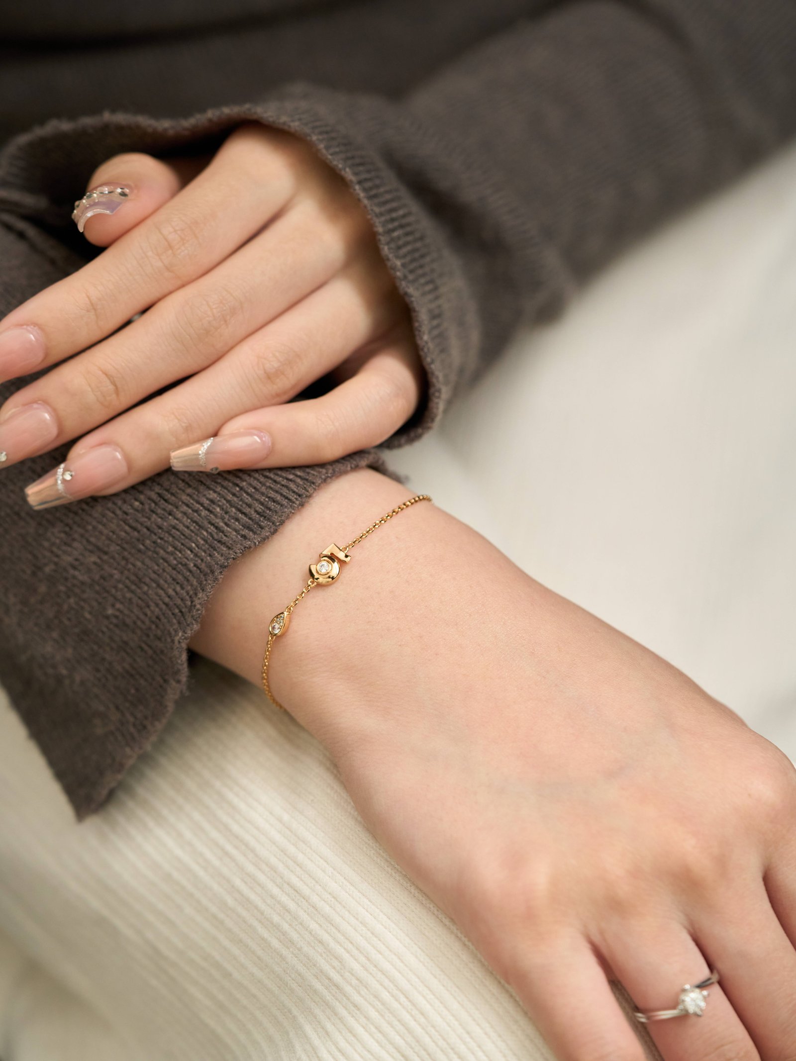 5-Character Diamond Free Hanging Chain Bracelet