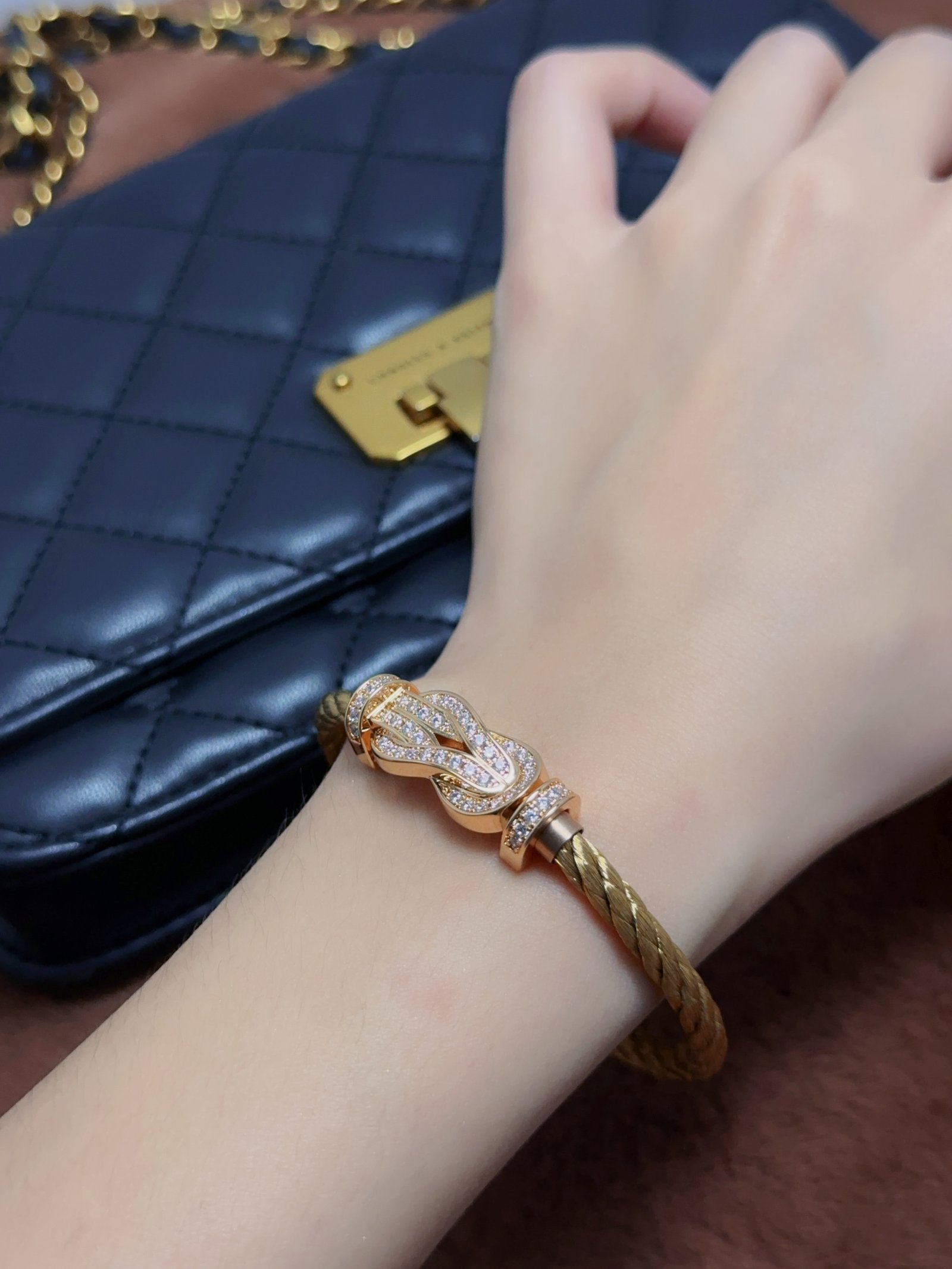 8-degree full diamond twisted flower buckle bracelet (large size)