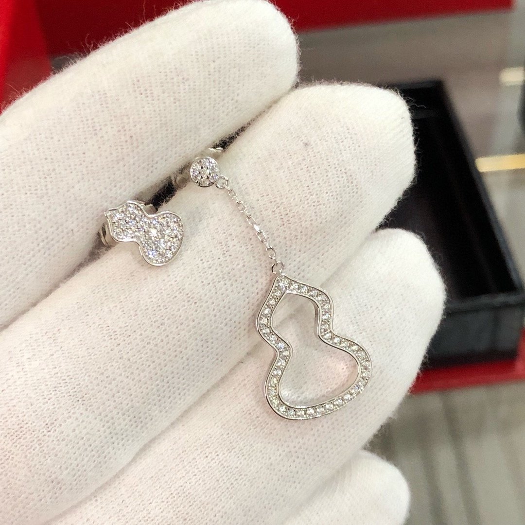 Asymmetric AB style diamond studded earrings with gourd