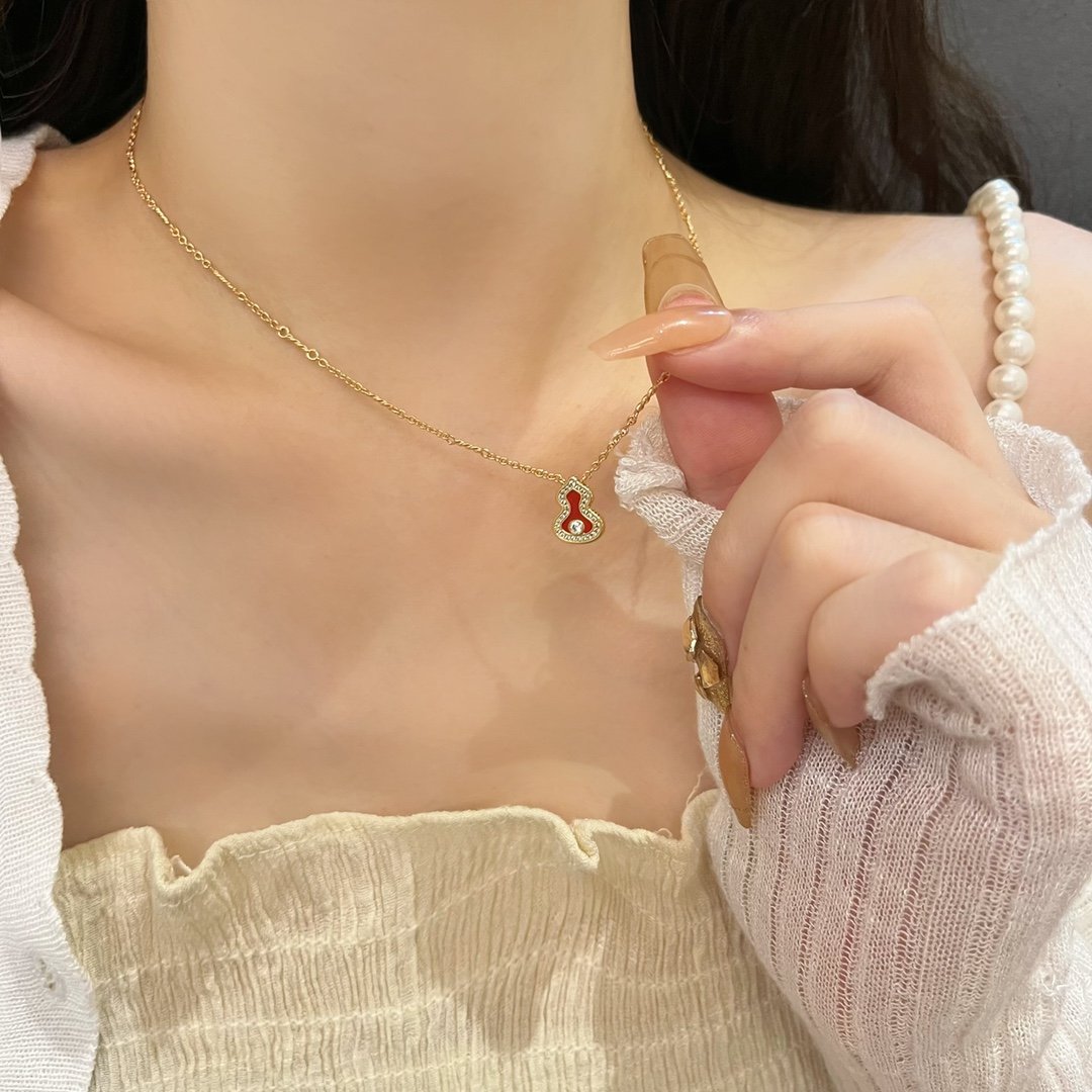 Wulu Legend series hollow gourd red diamond necklace