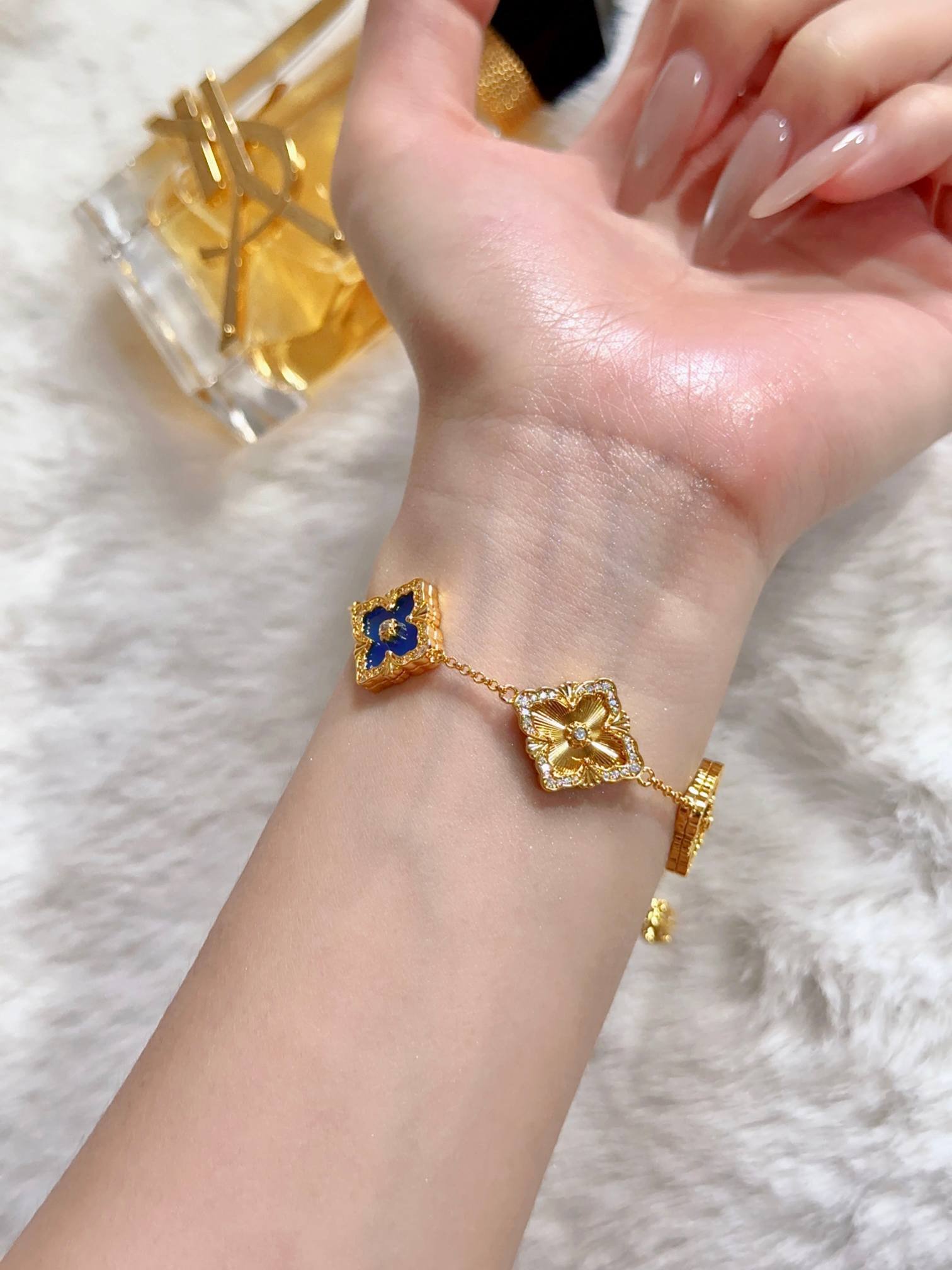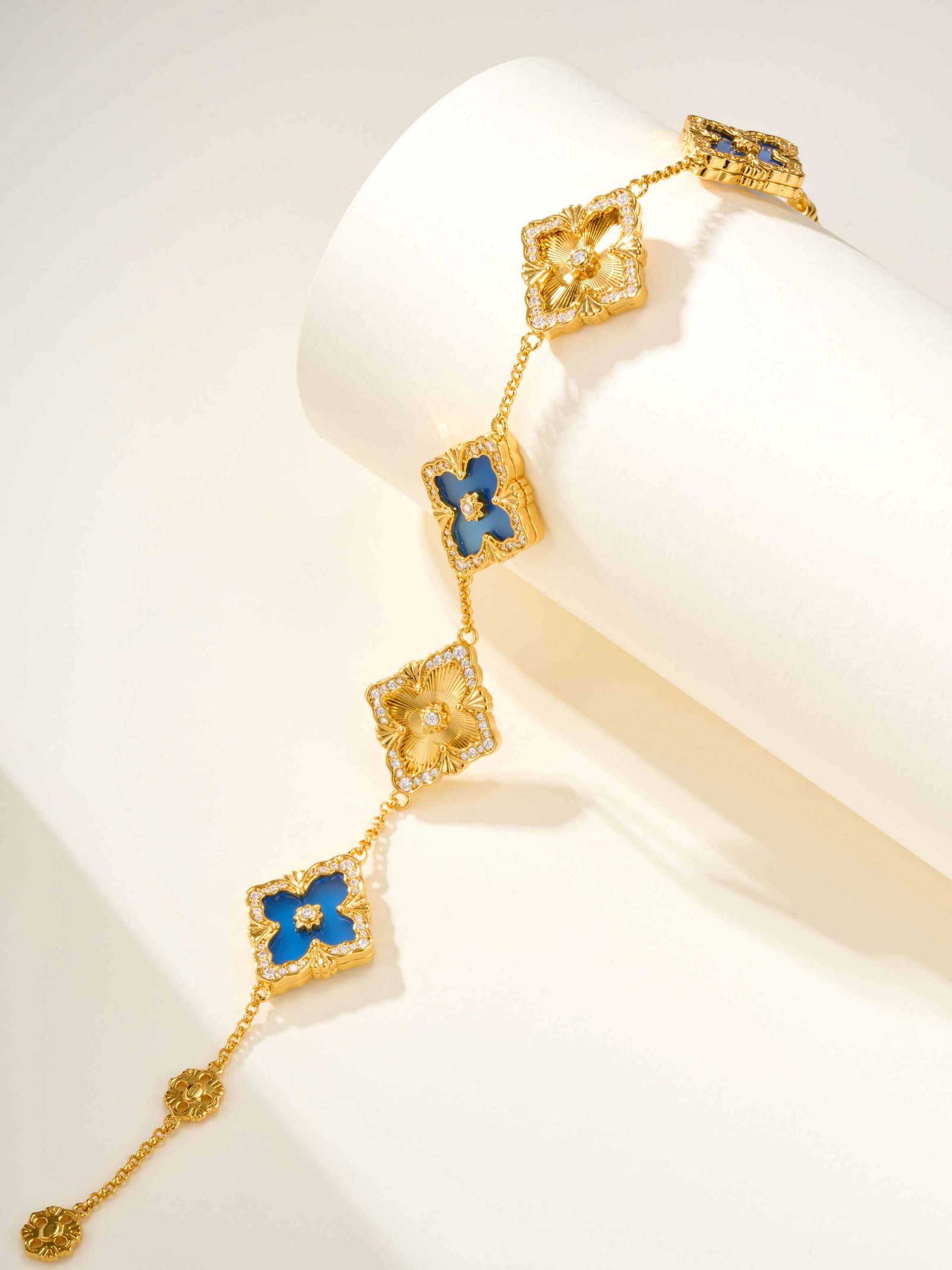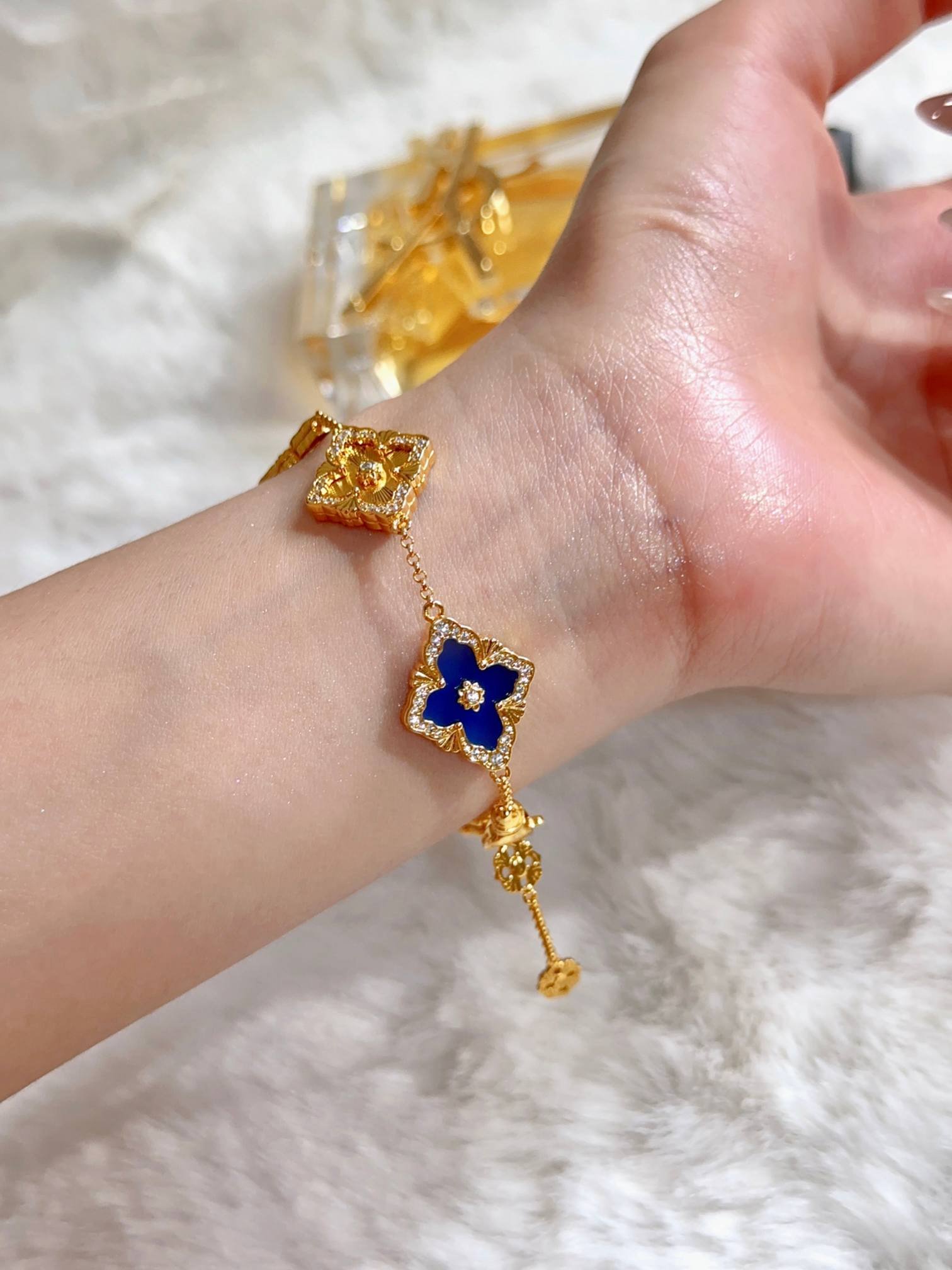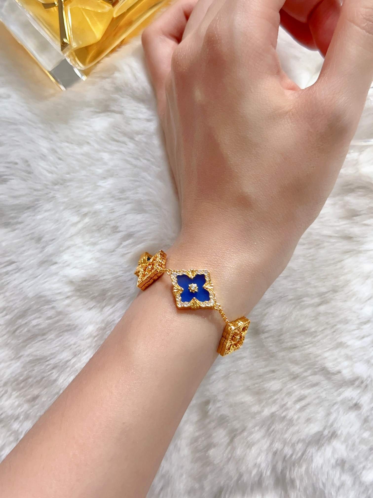 BU Opera Series Five Flower Diamond Set Blue Jade Marrow Car Flower Bracelet (Large)