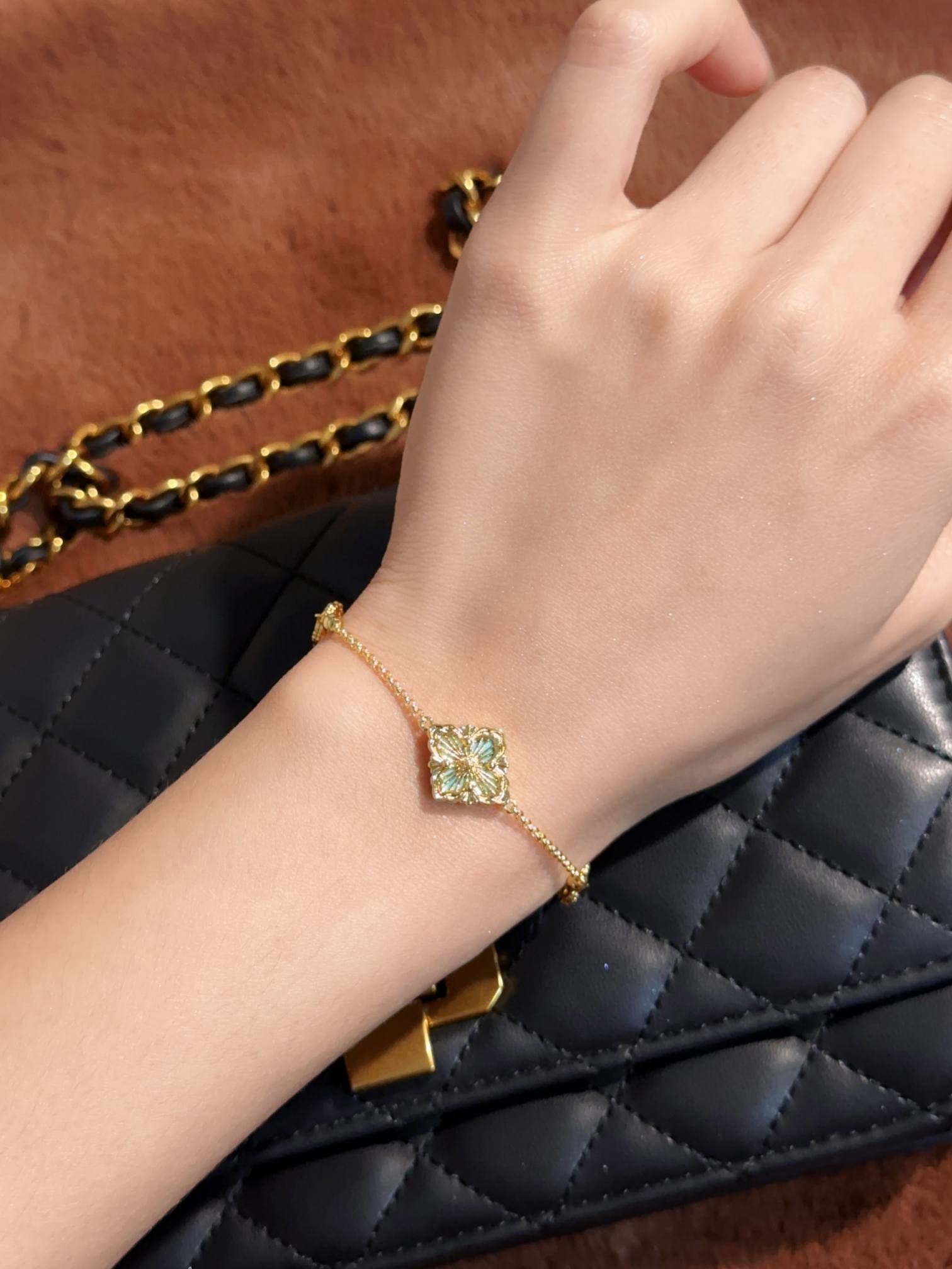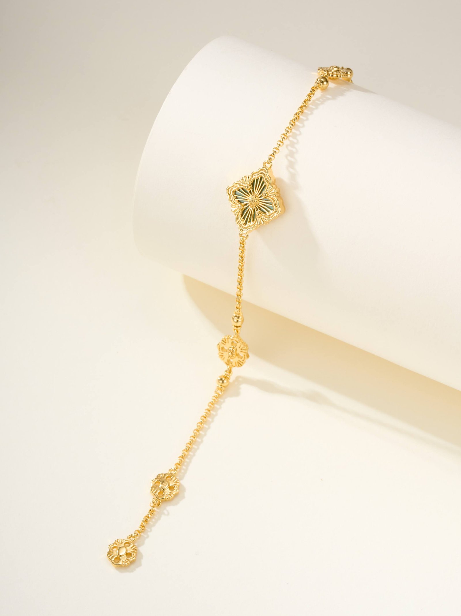 BU Opera Series Gold 3-Pattern Single Flower Tianhe Stone Bracelet (Small)