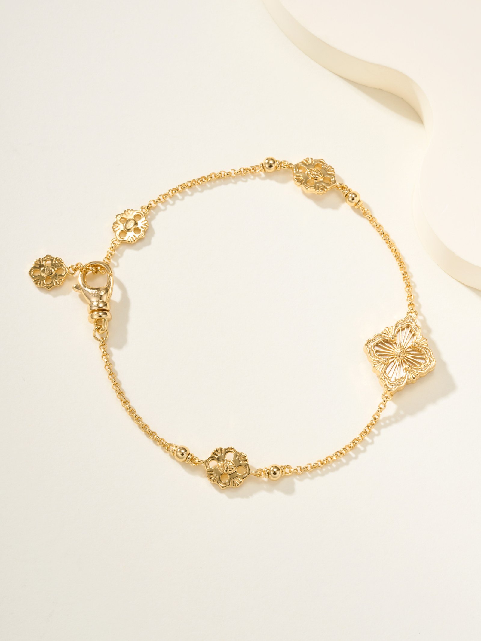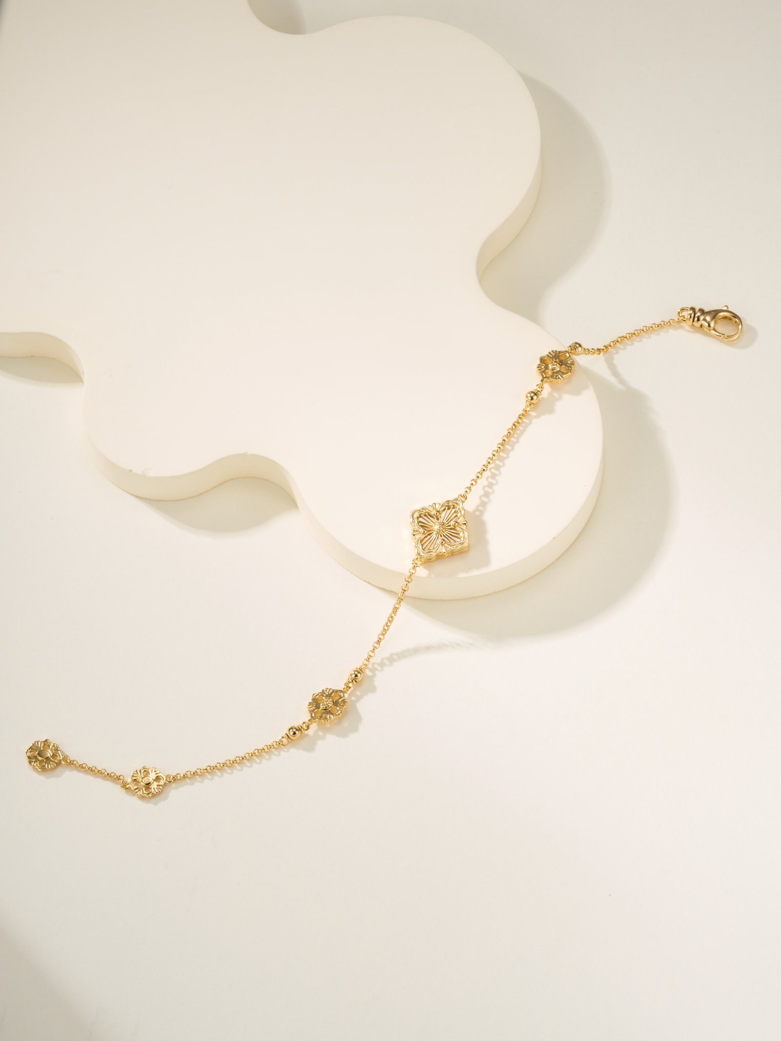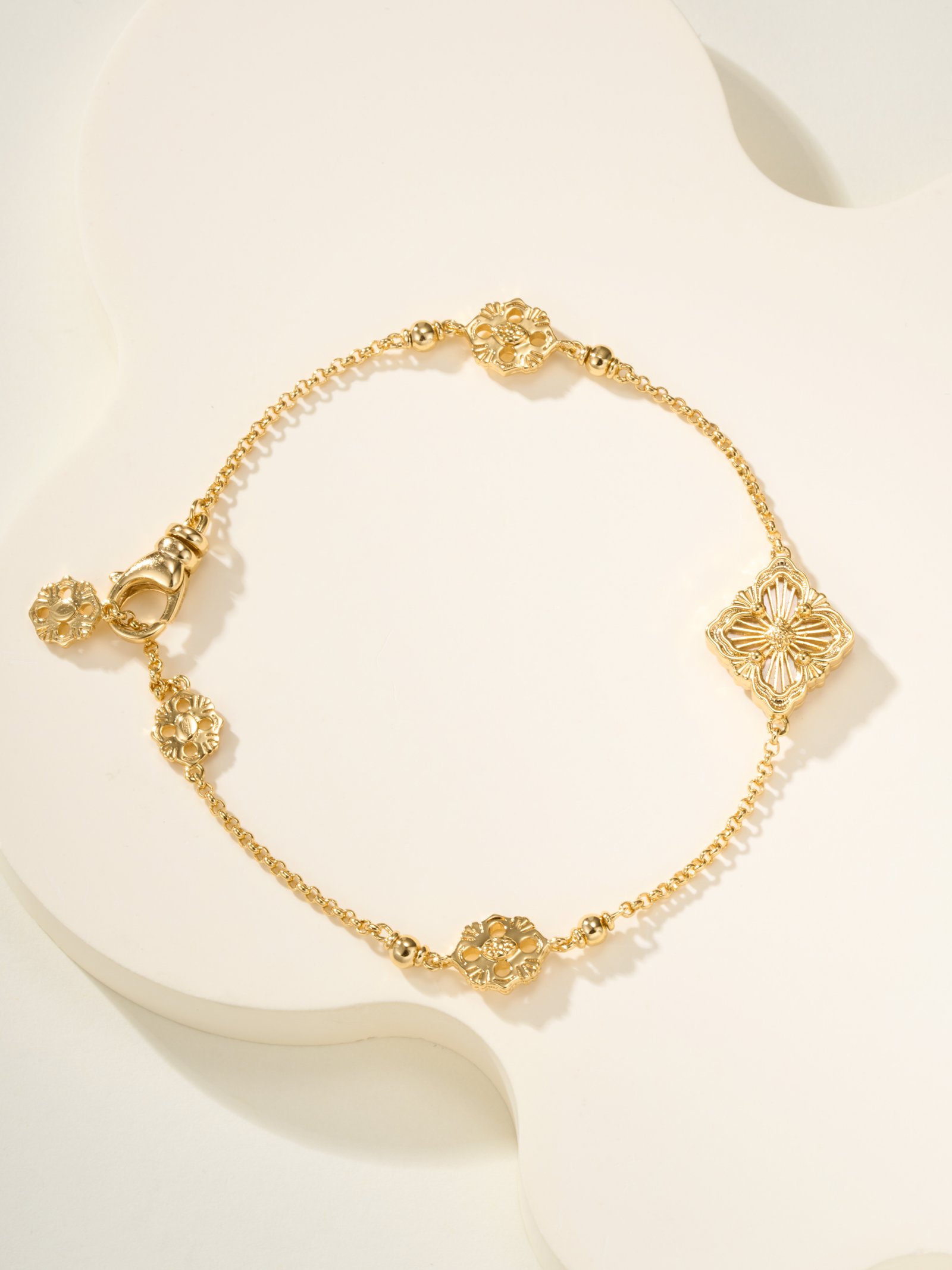BU Opera Series Gold 3-Pattern Single Flower White Beimu Bracelet (Small)