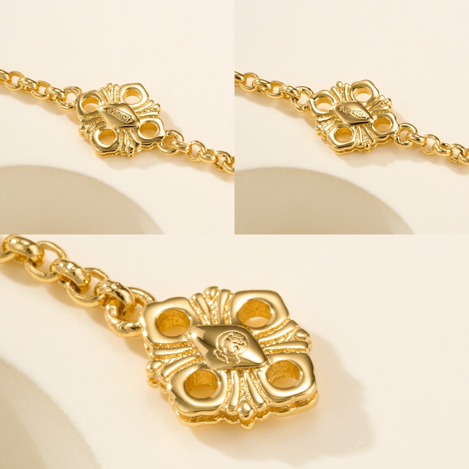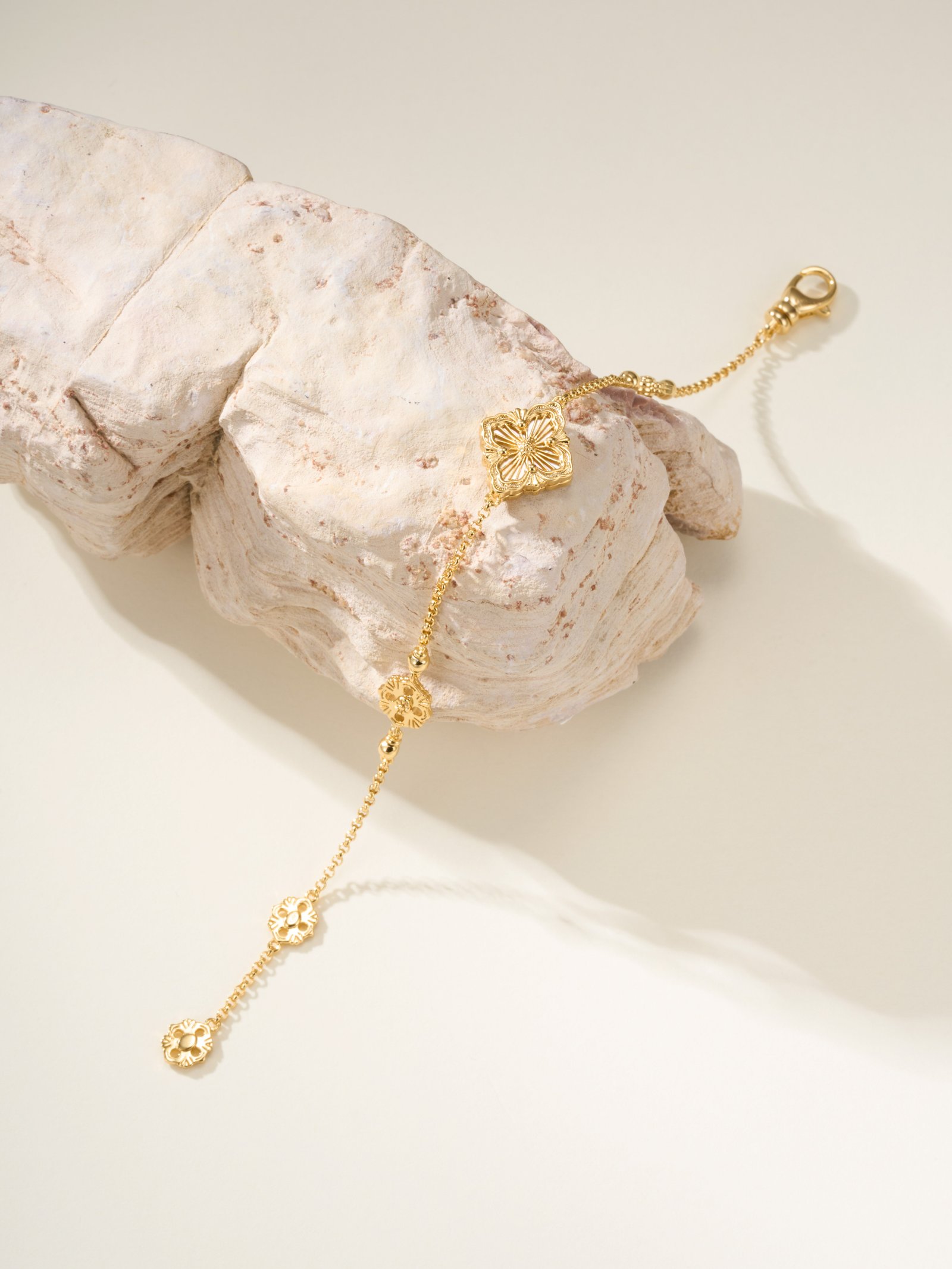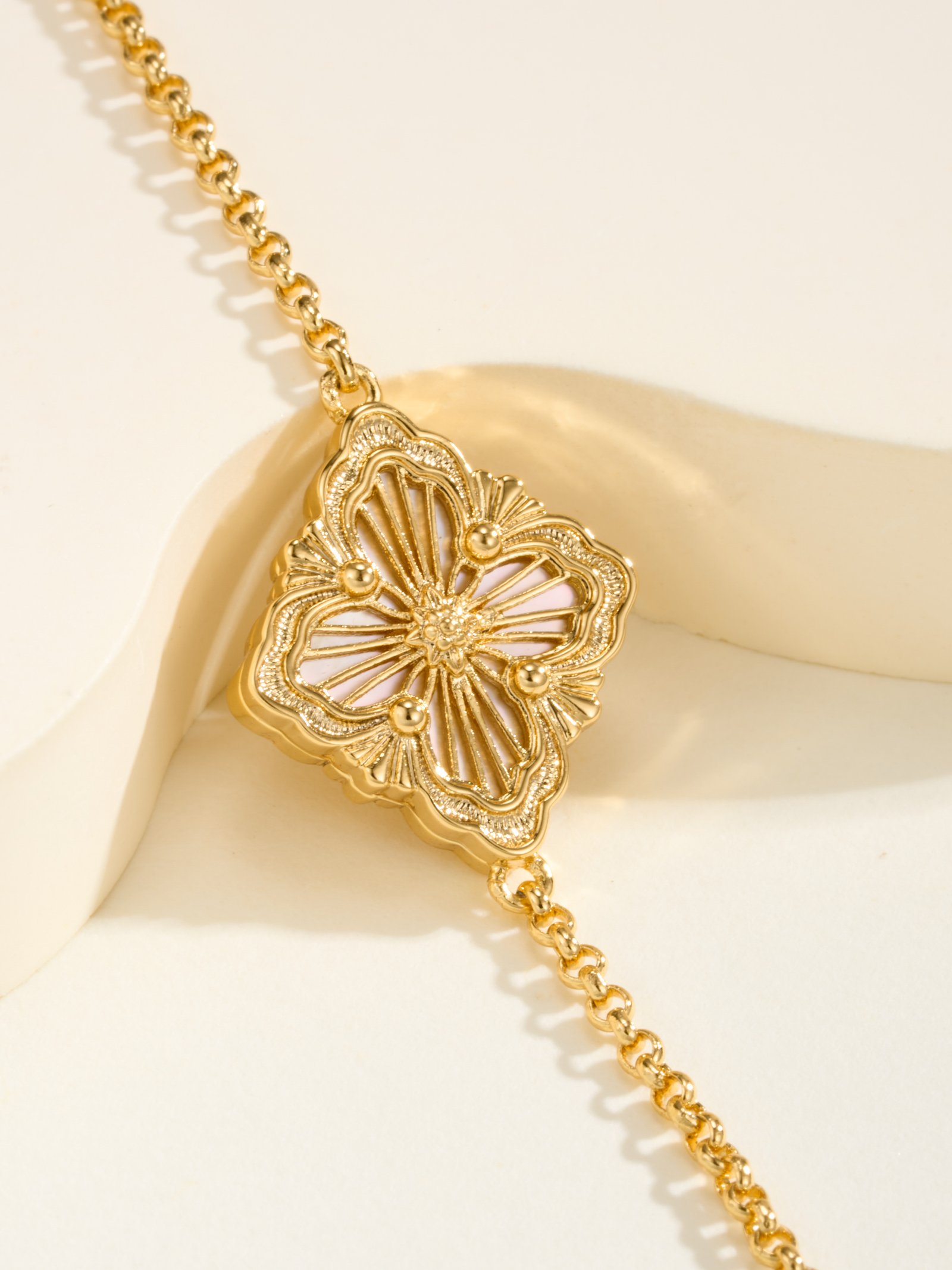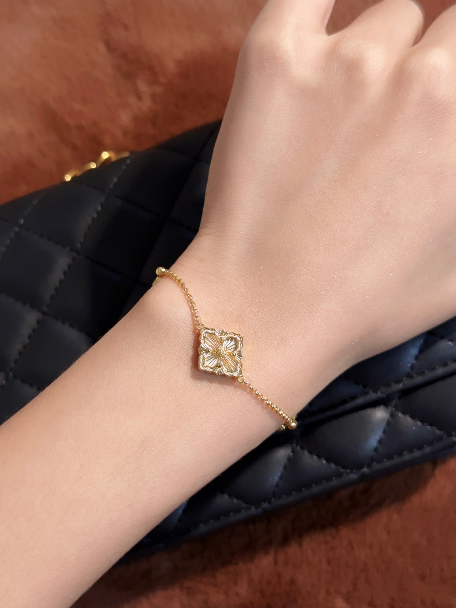 BU Opera Series Gold 3-Pattern Single Flower White Beimu Bracelet (Small)