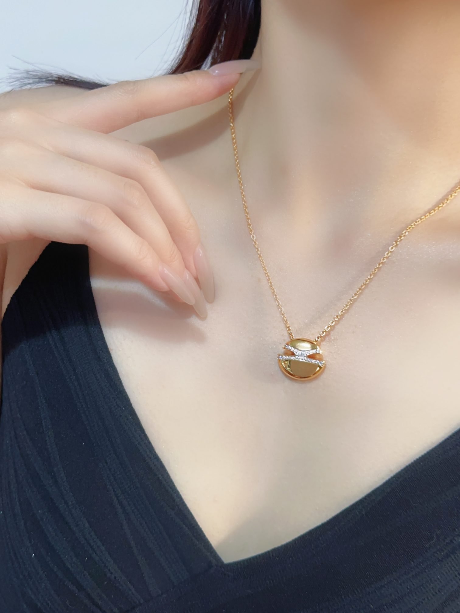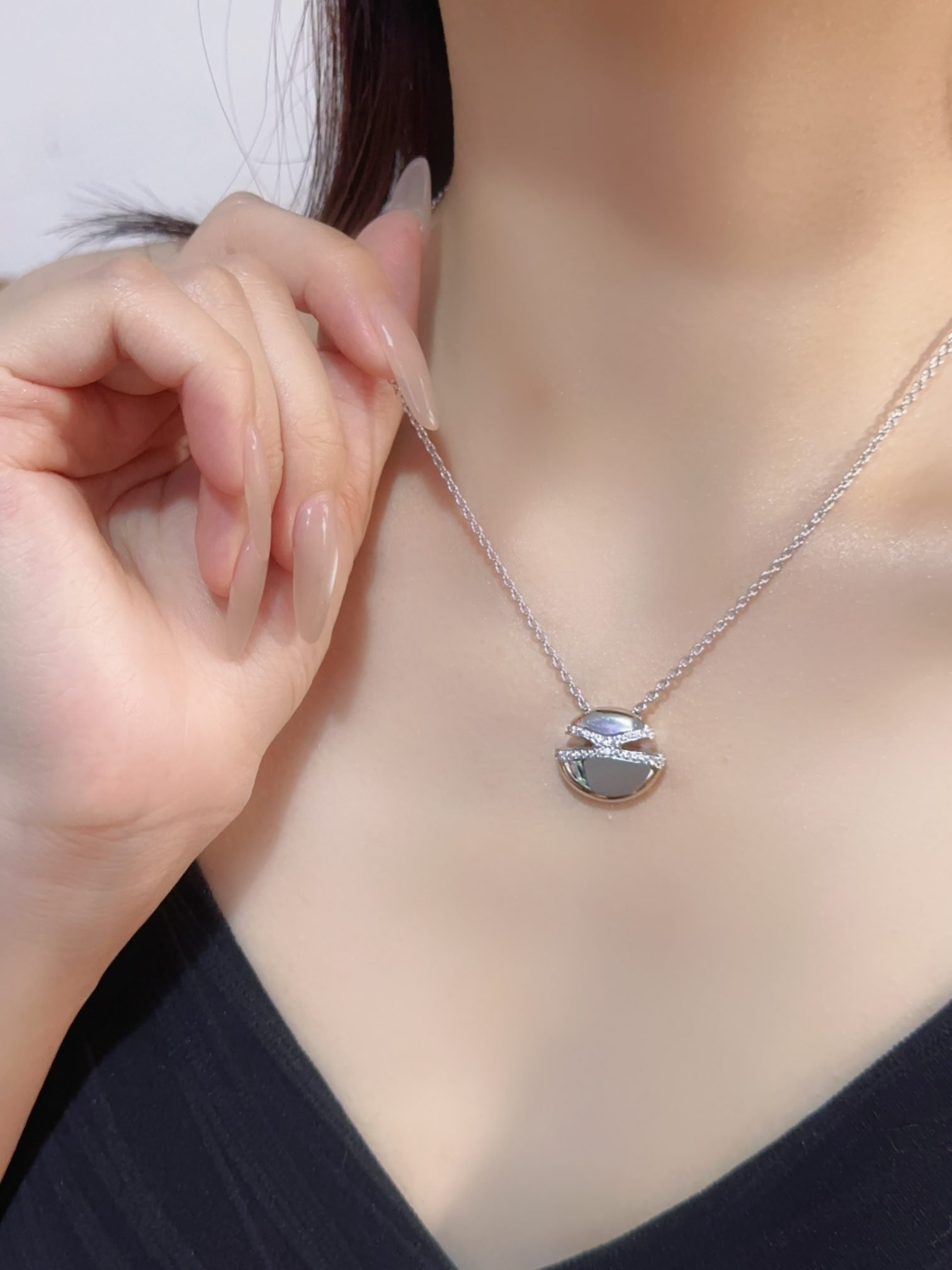 CABOCHON series diamond studded necklace