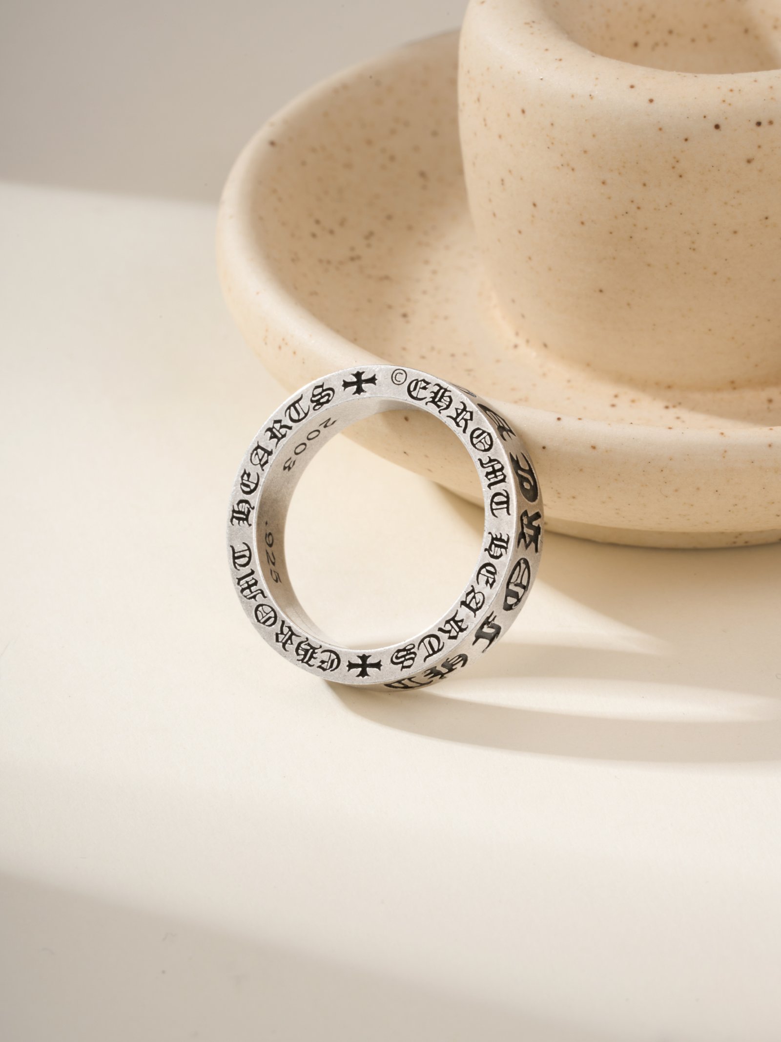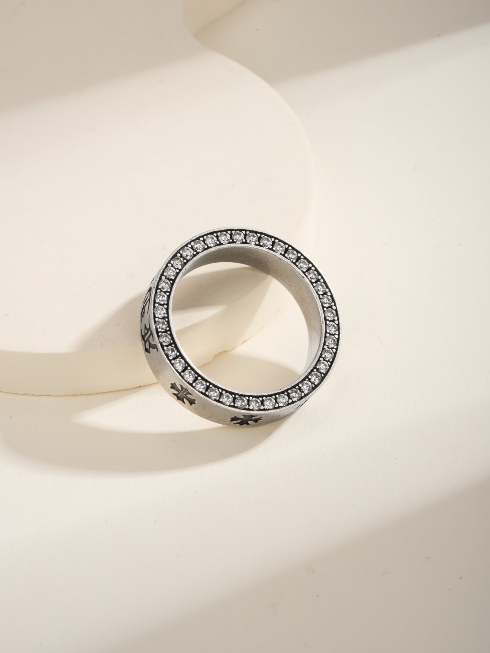 Chrome Hearts Eternal Heart Diamond studded Silver Oxide Ring