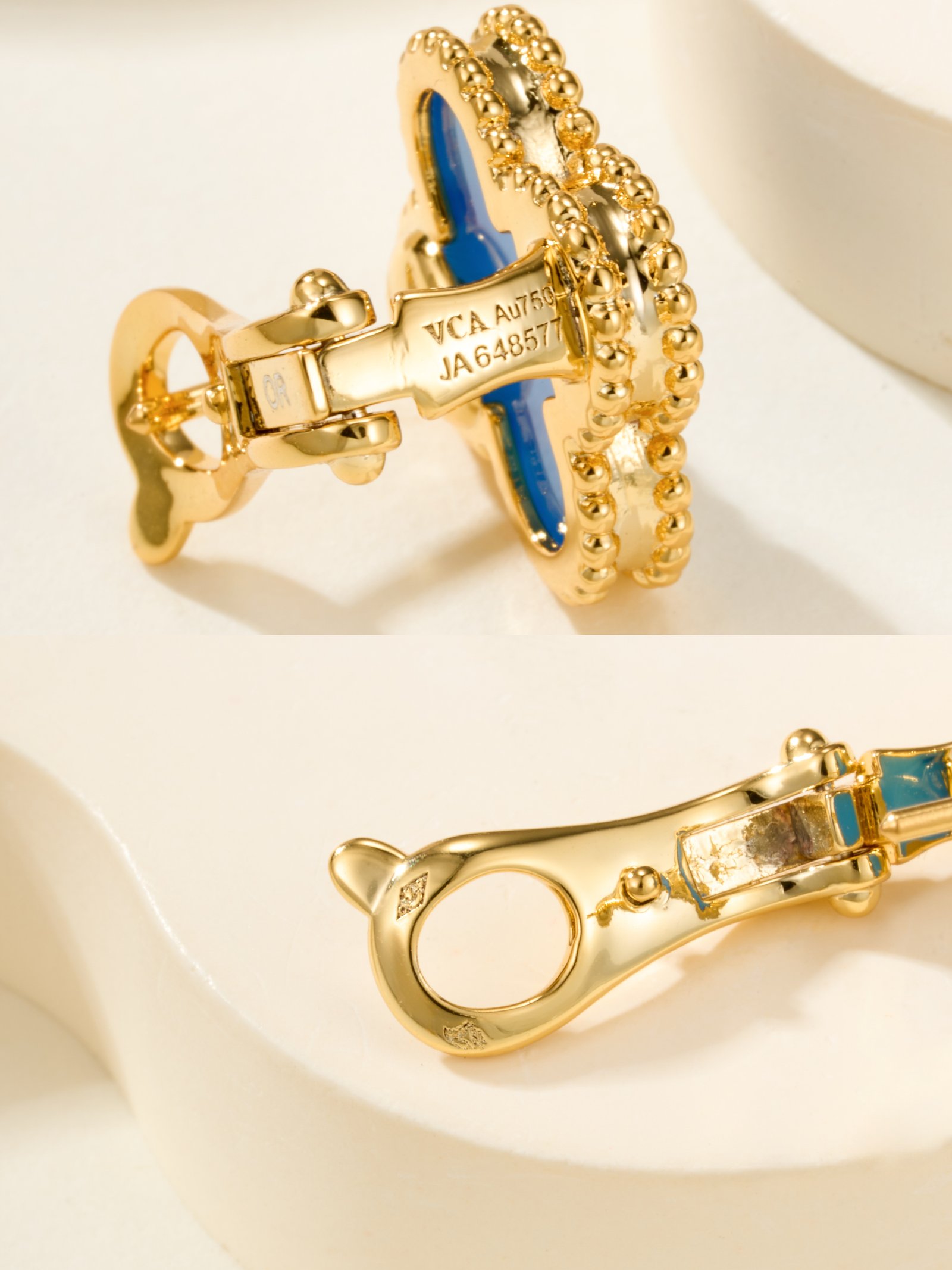 Vintage Alhambra Bracelet with 5 Flowers Gold Tiger Eye Stone
