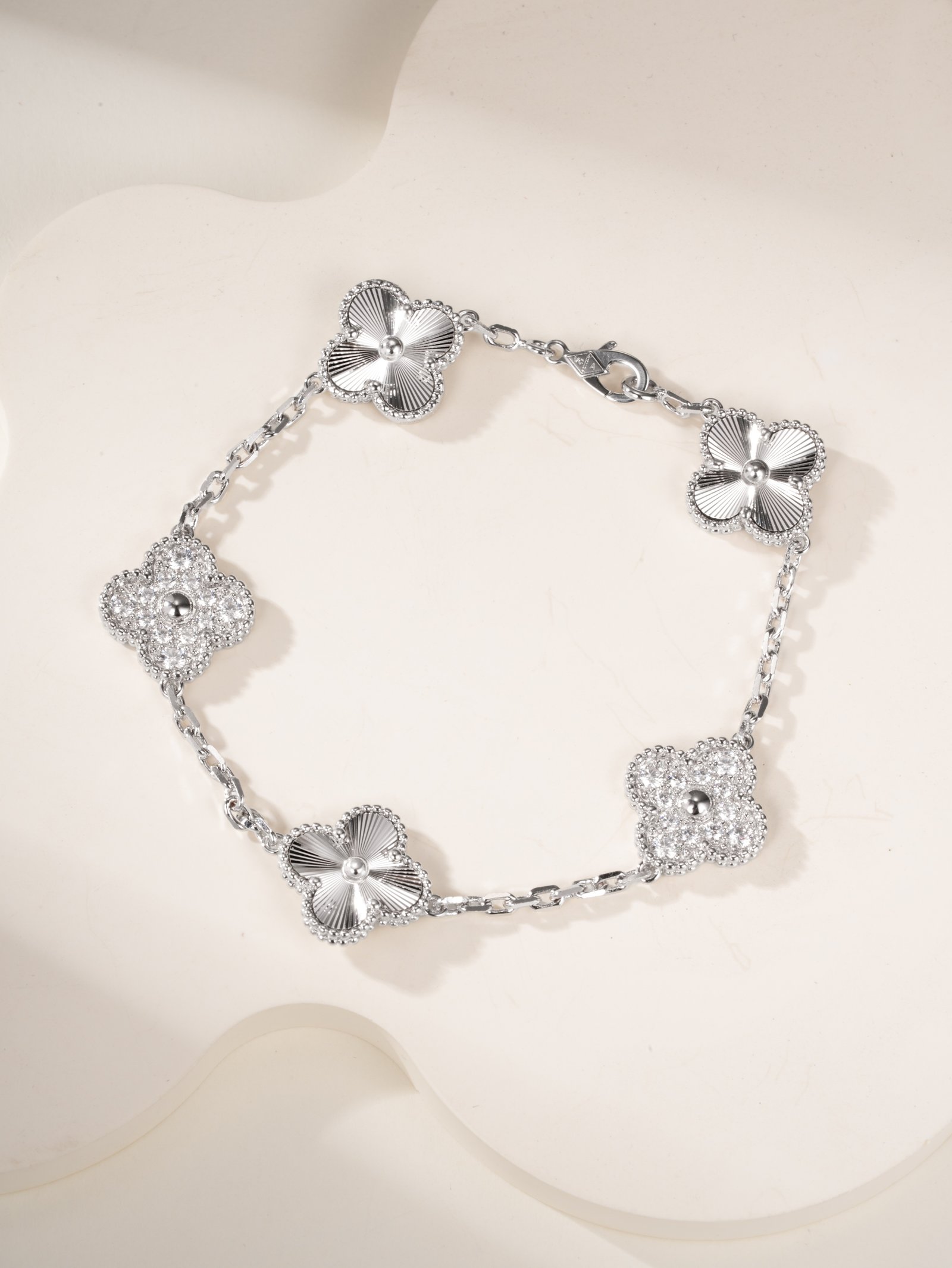 2024 Limited Edition Laser Rose Gold Platinum Mixed Color Five Flower Bracelet