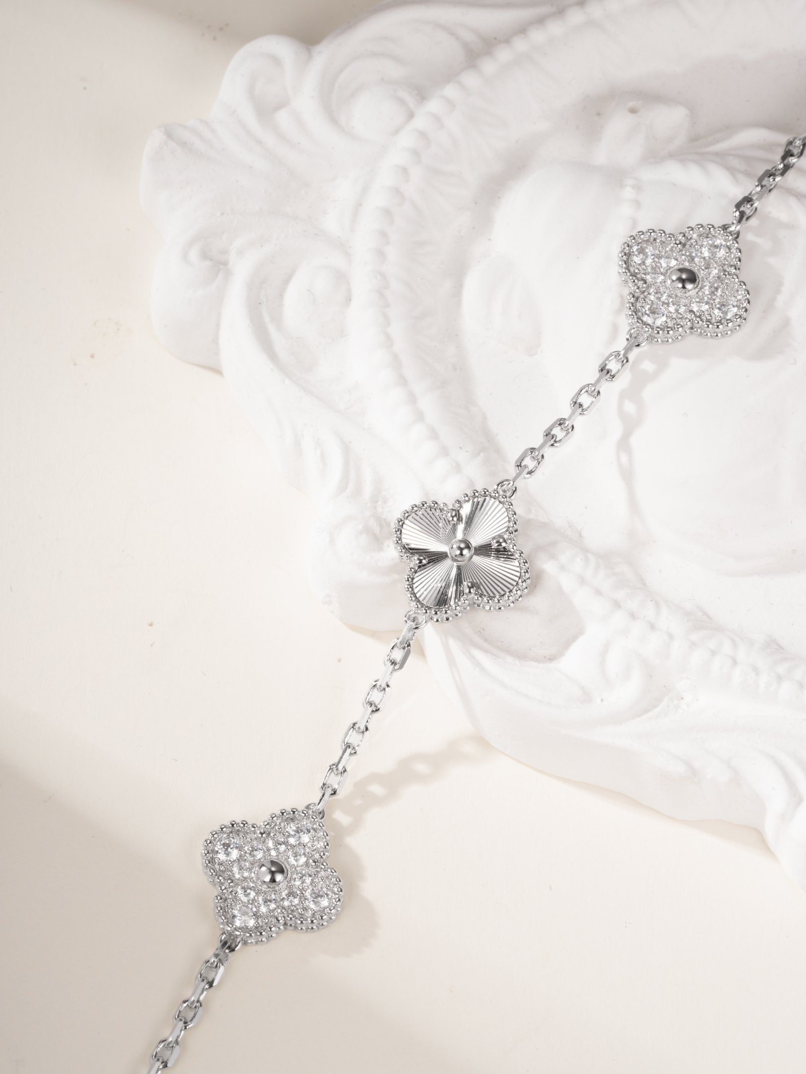 Diamond five flower bracelet with intricate carvings
