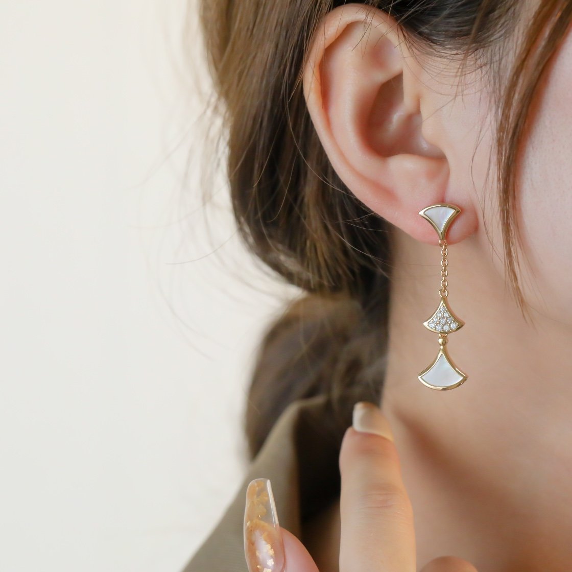 Diva skirt, long suspender, diamond earrings