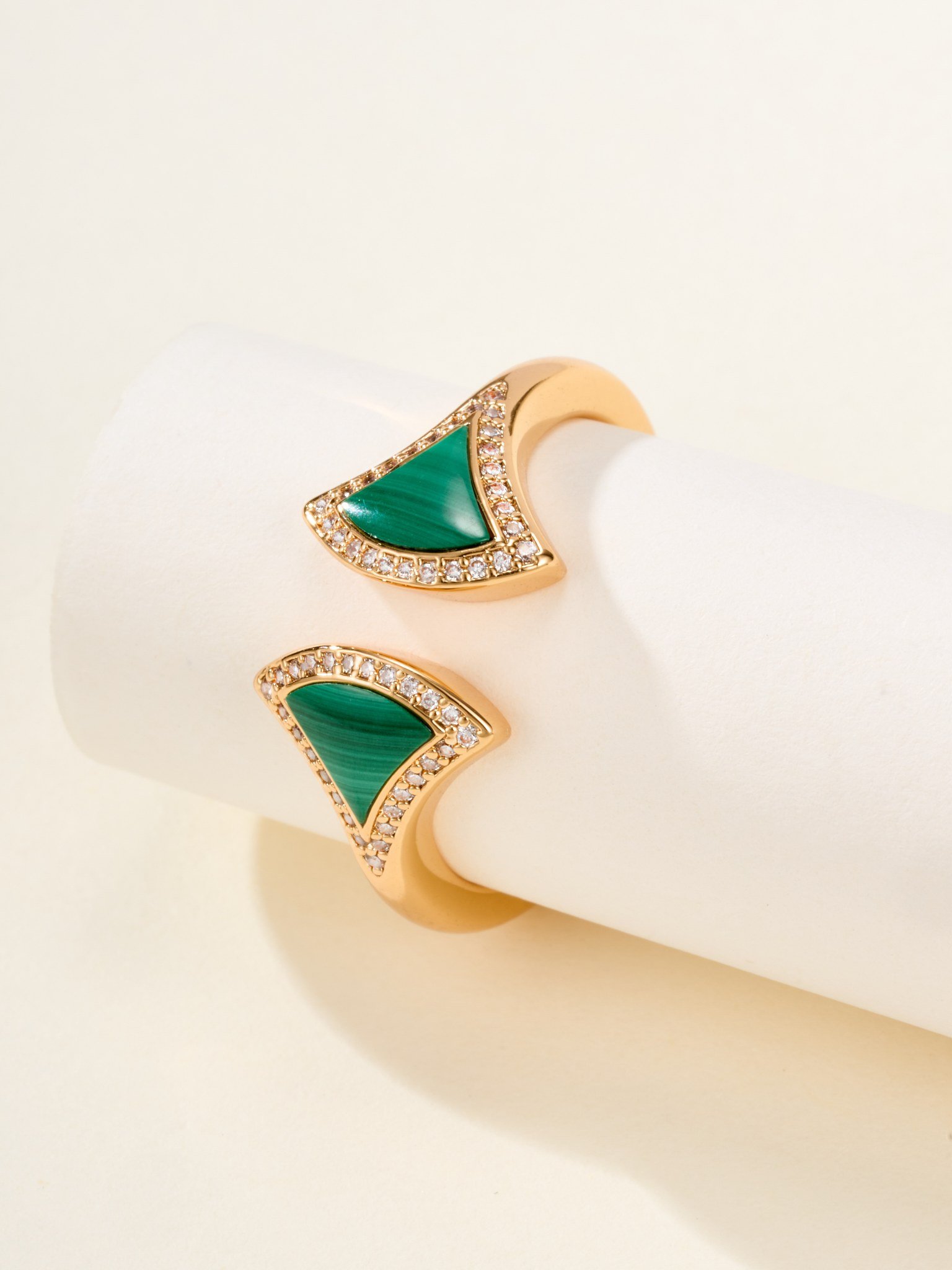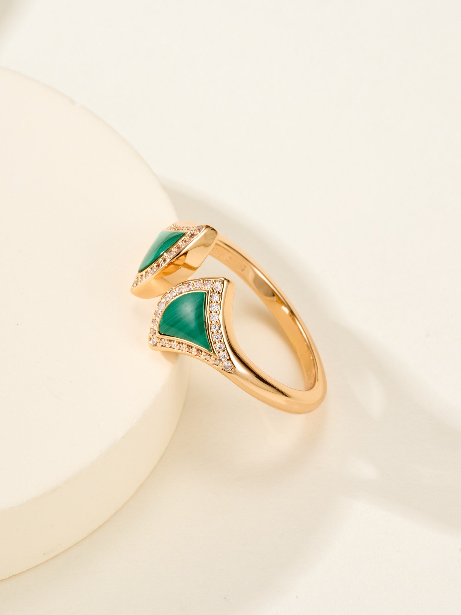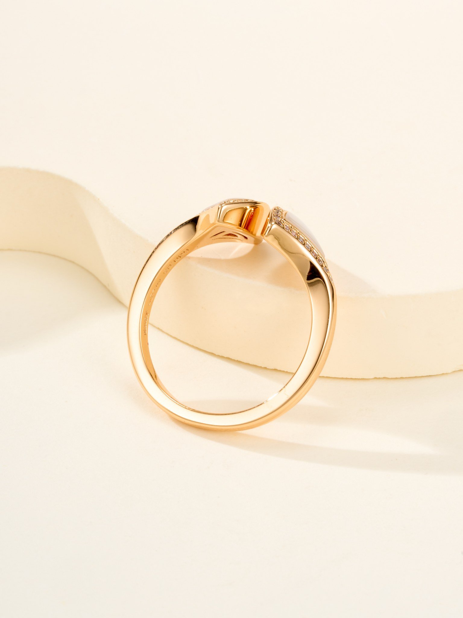 Double fan diamond studded ring