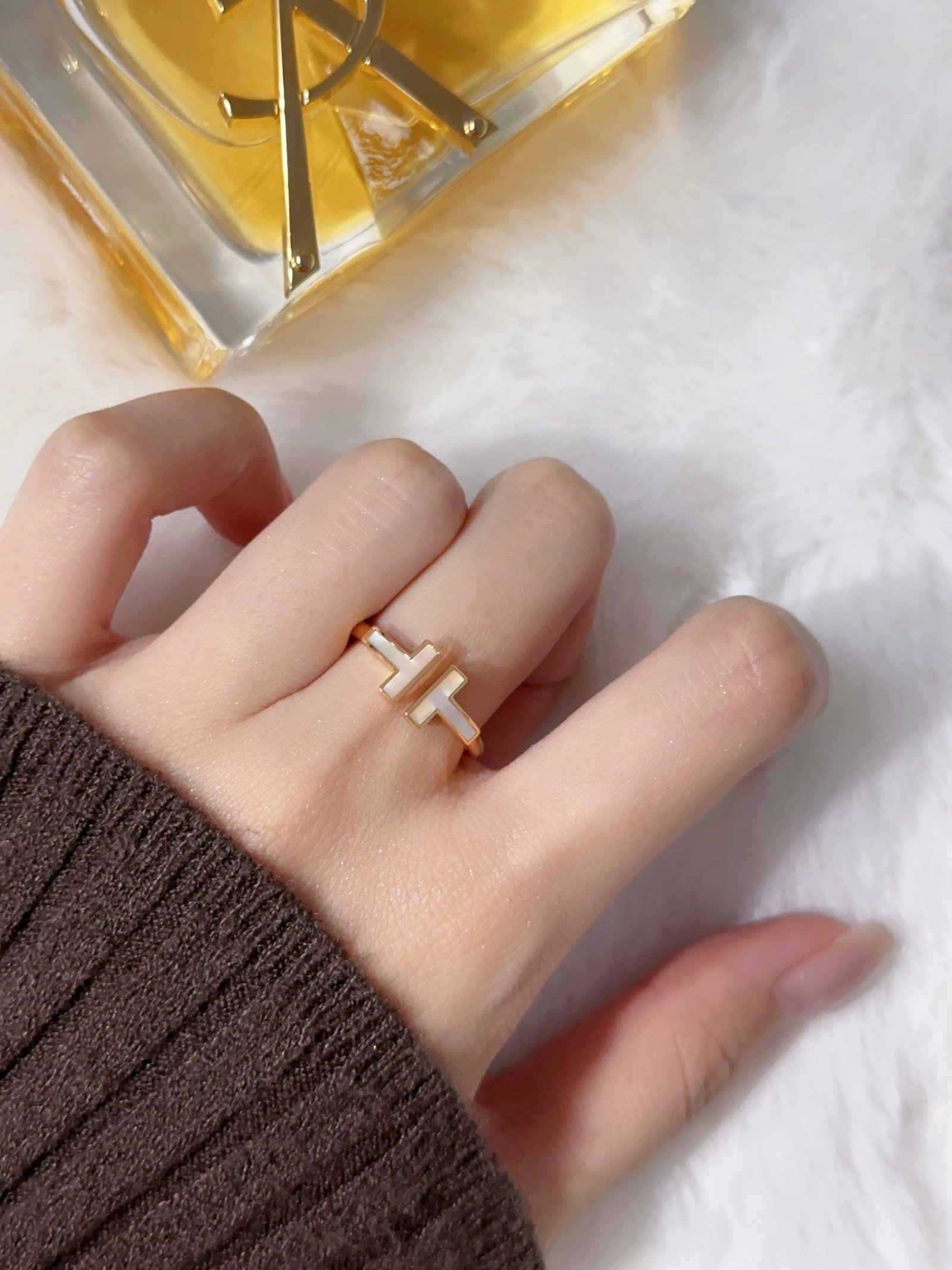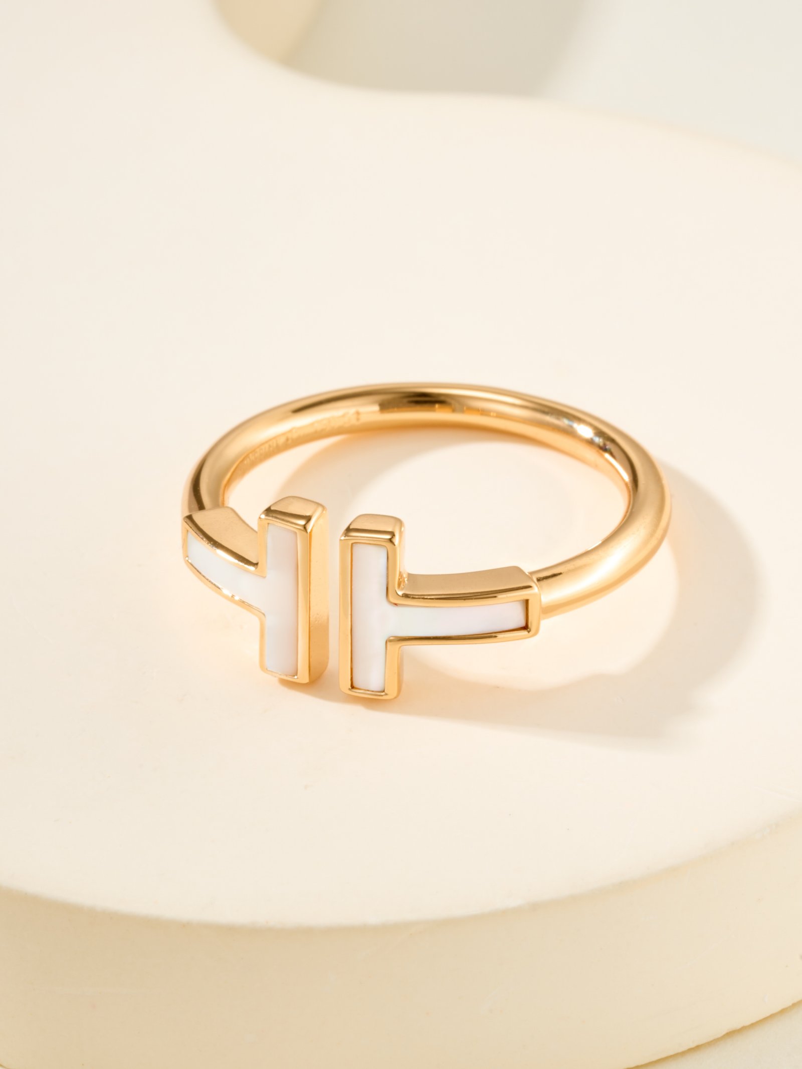 Double T all white shell ring