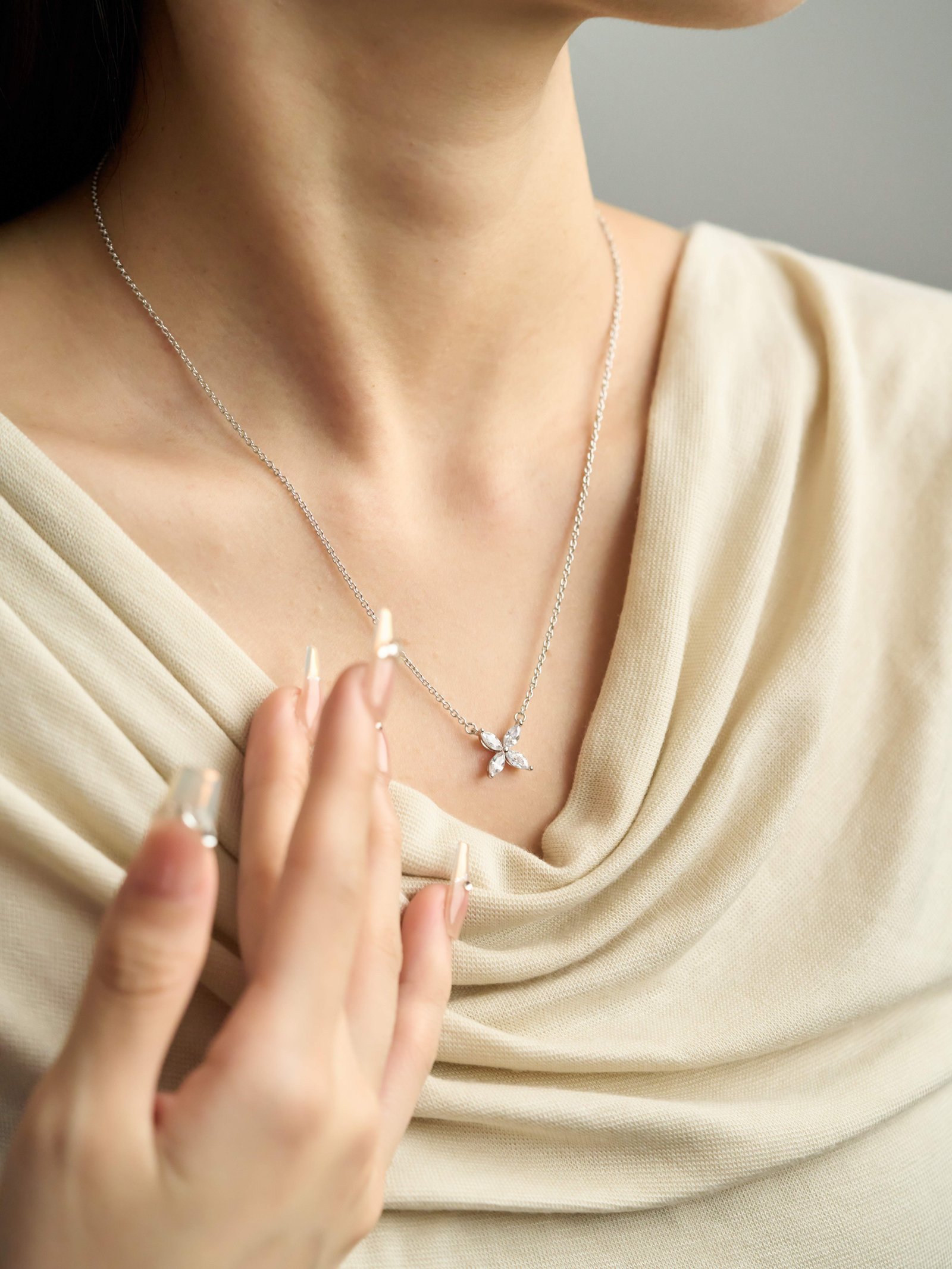 Four flower horse eye diamond necklace (colored white)