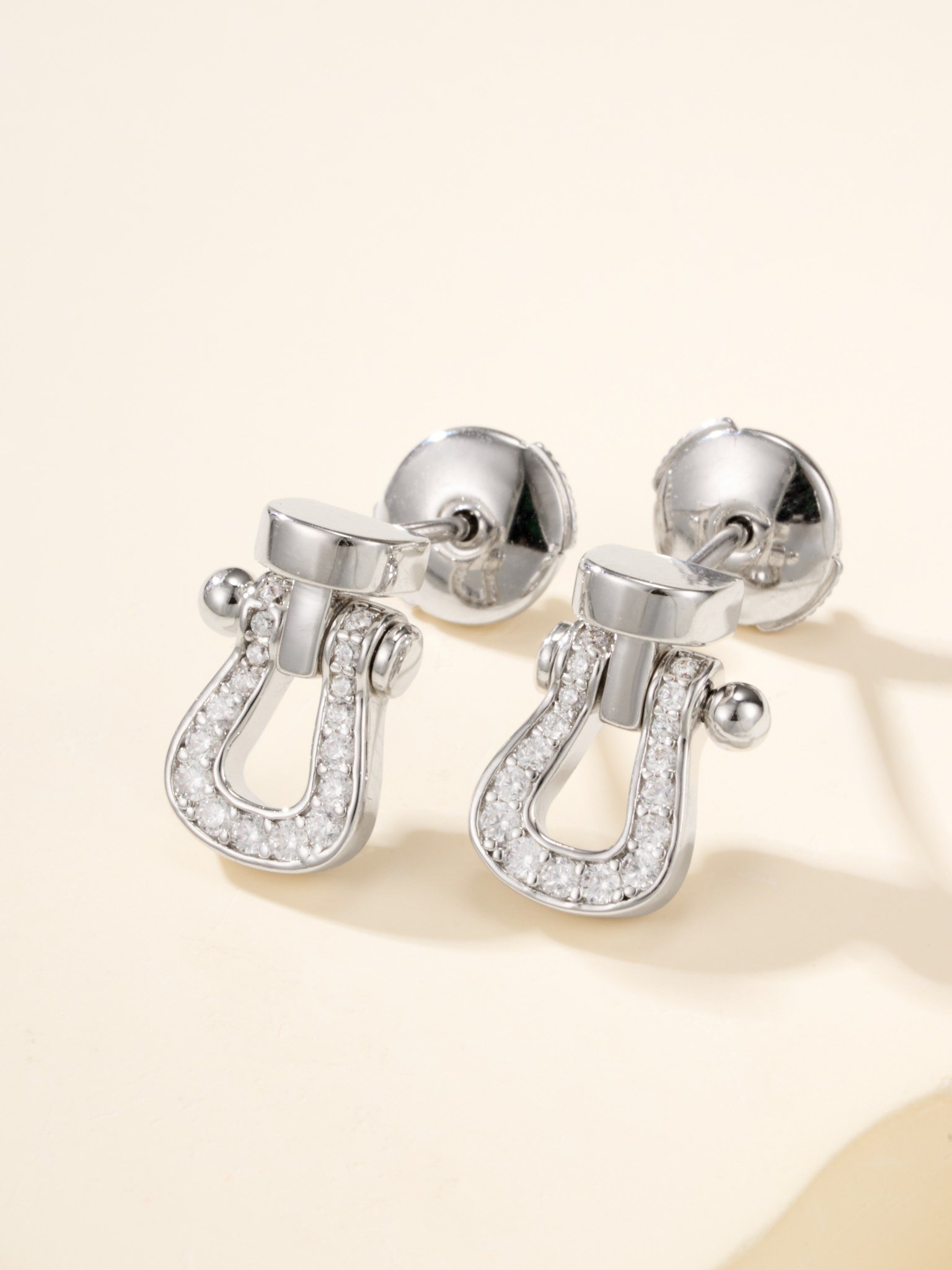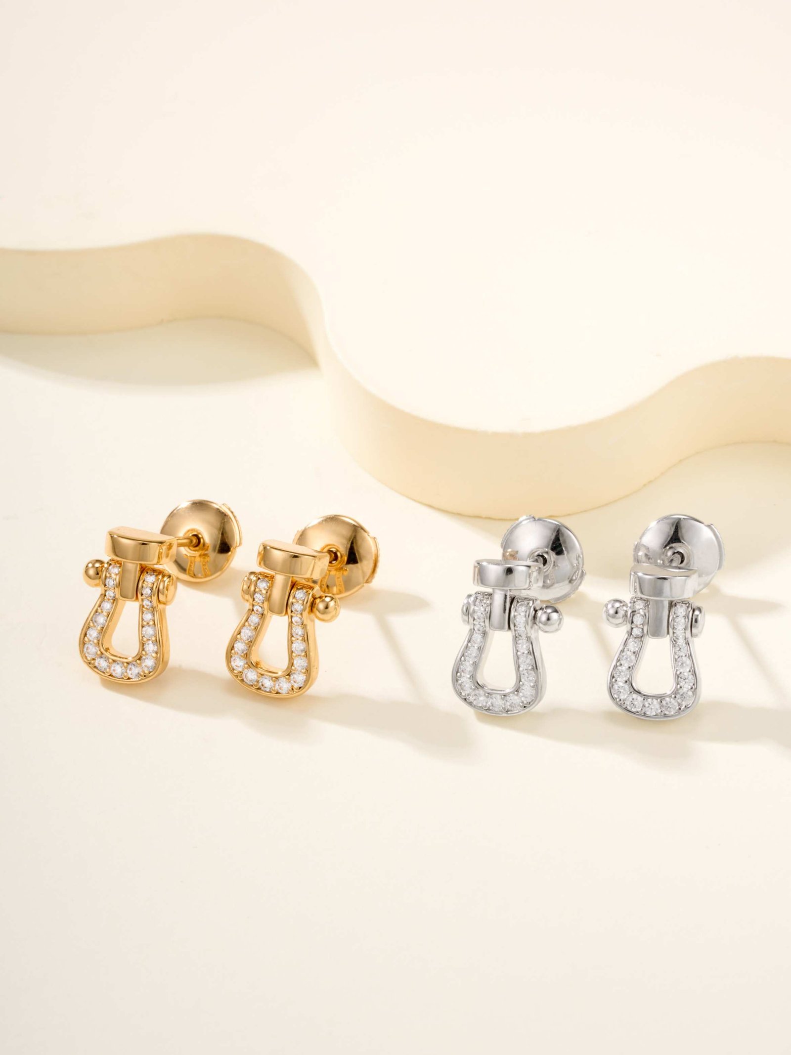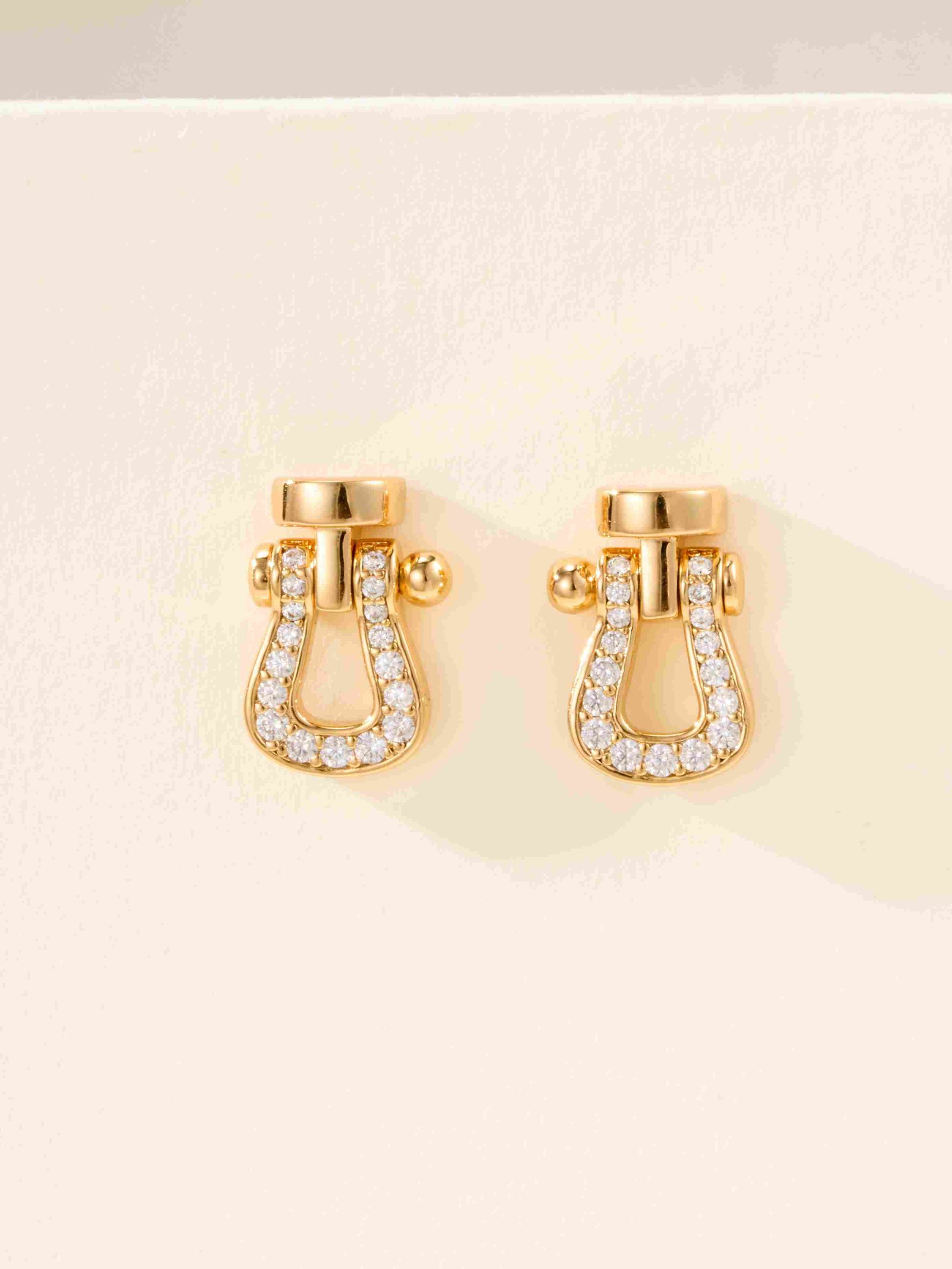 Half circle diamond studded earrings on horse hooves
