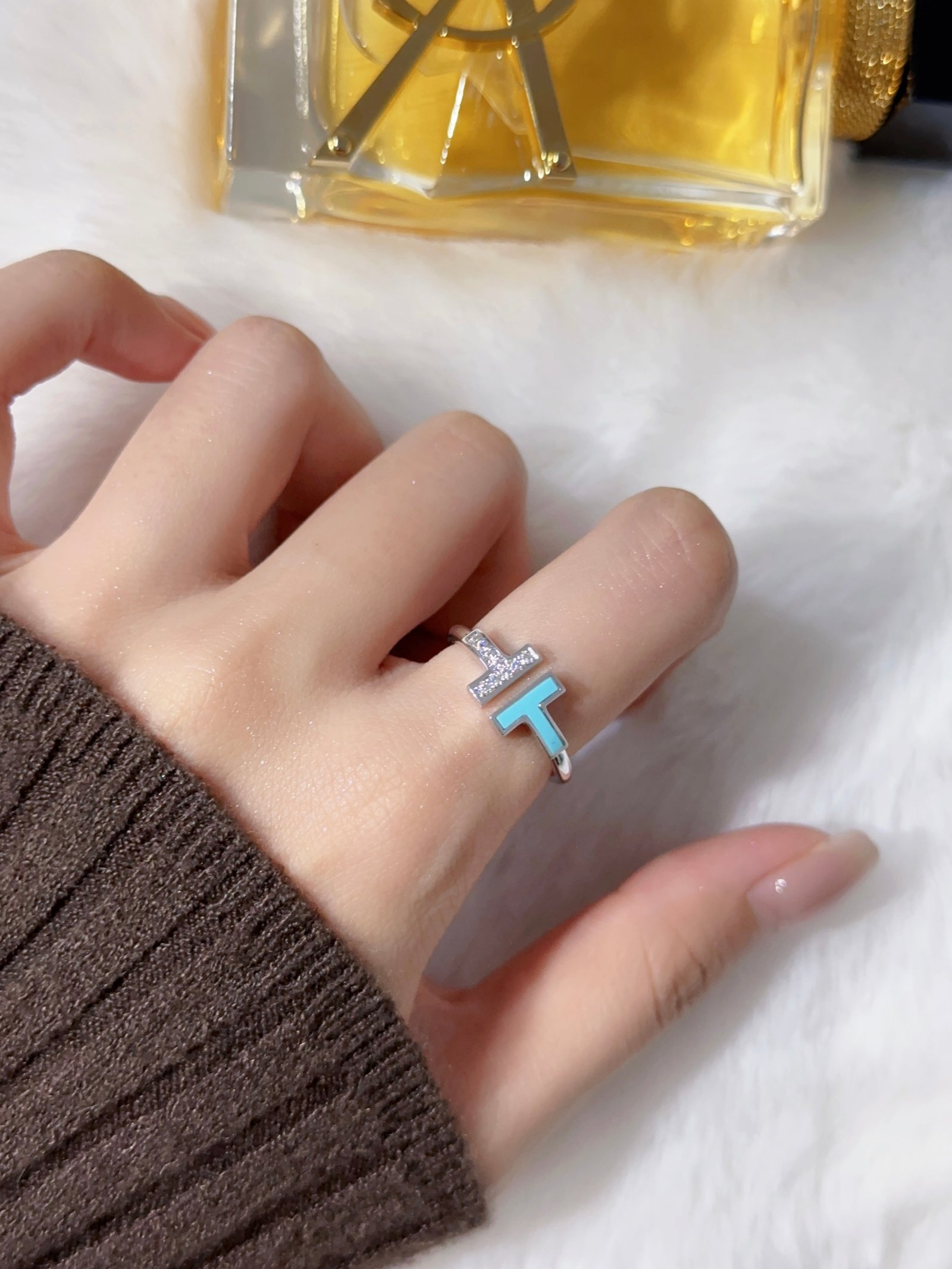 Half diamond, half green ring