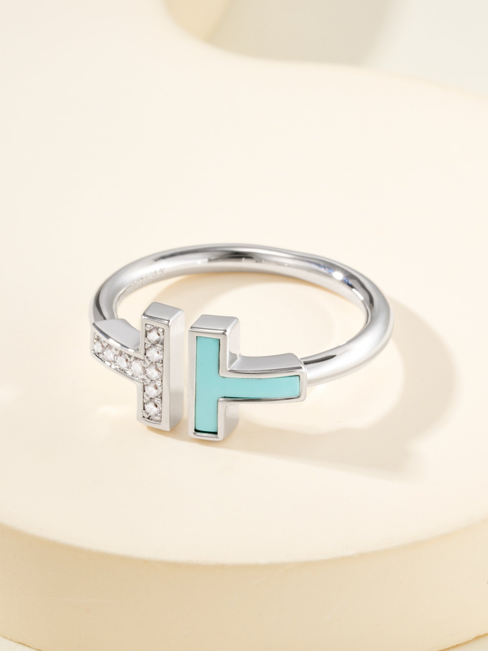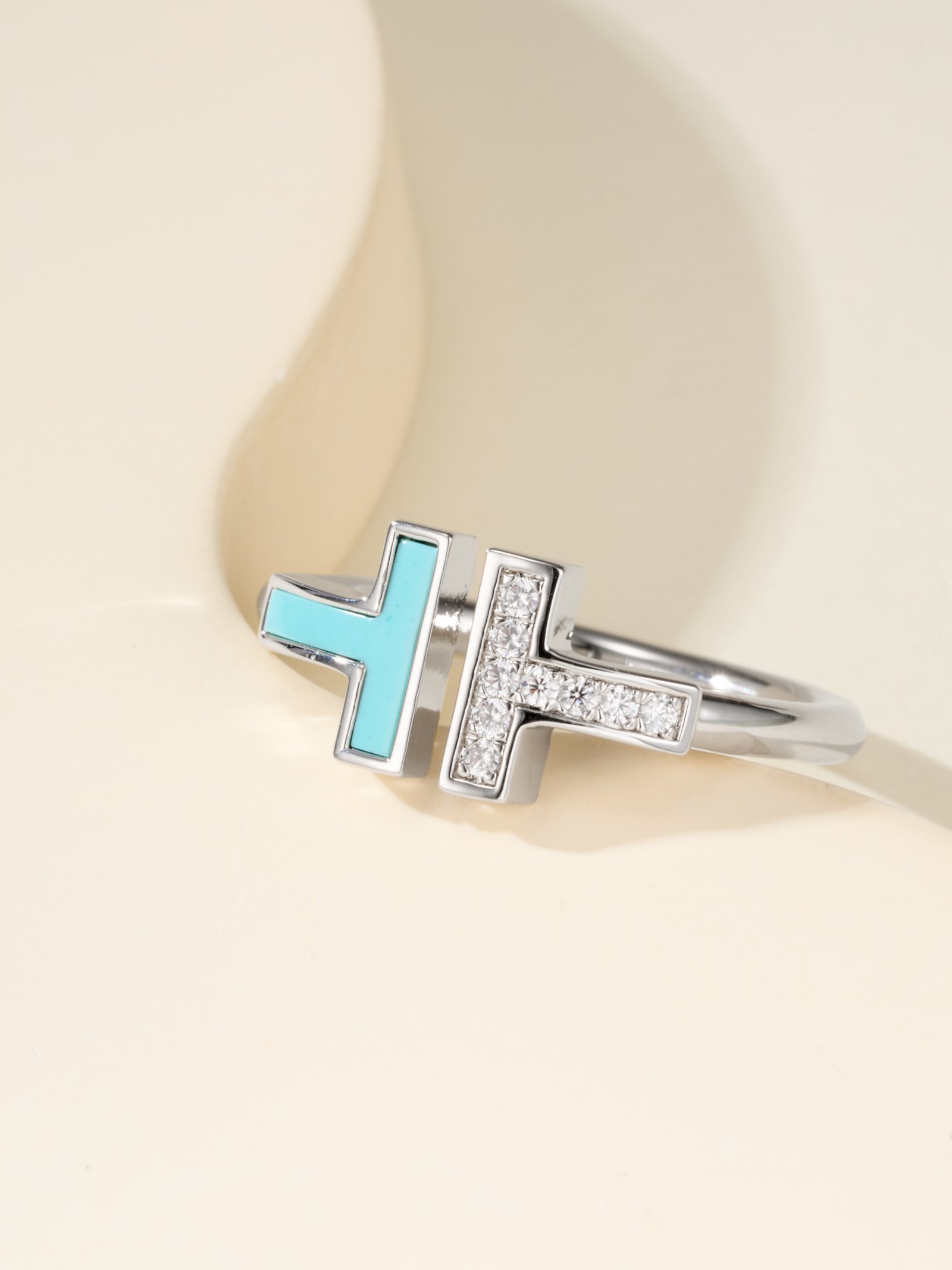 Double T all white shell ring