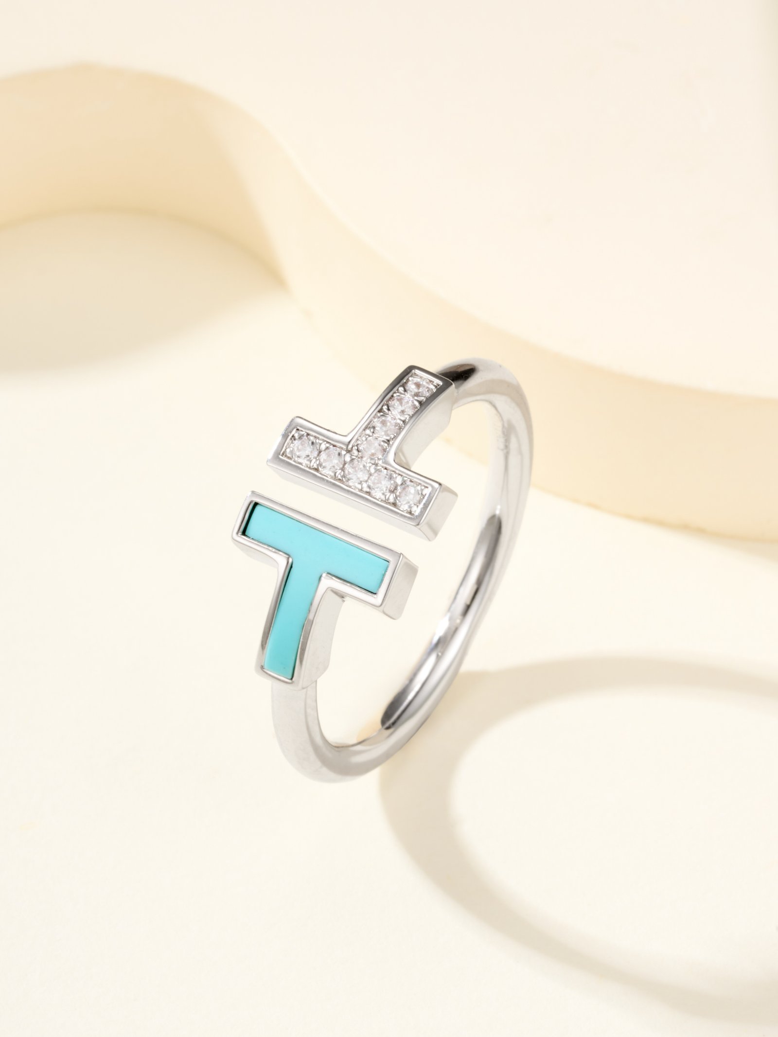 T Three Diamond Letter 4mm Wide Ring