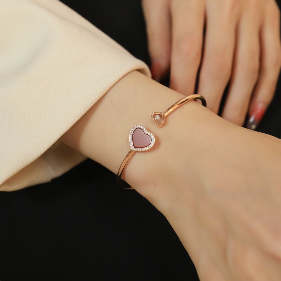 Happy Hearts Diamond Set Natural Stone Bracelet M Size