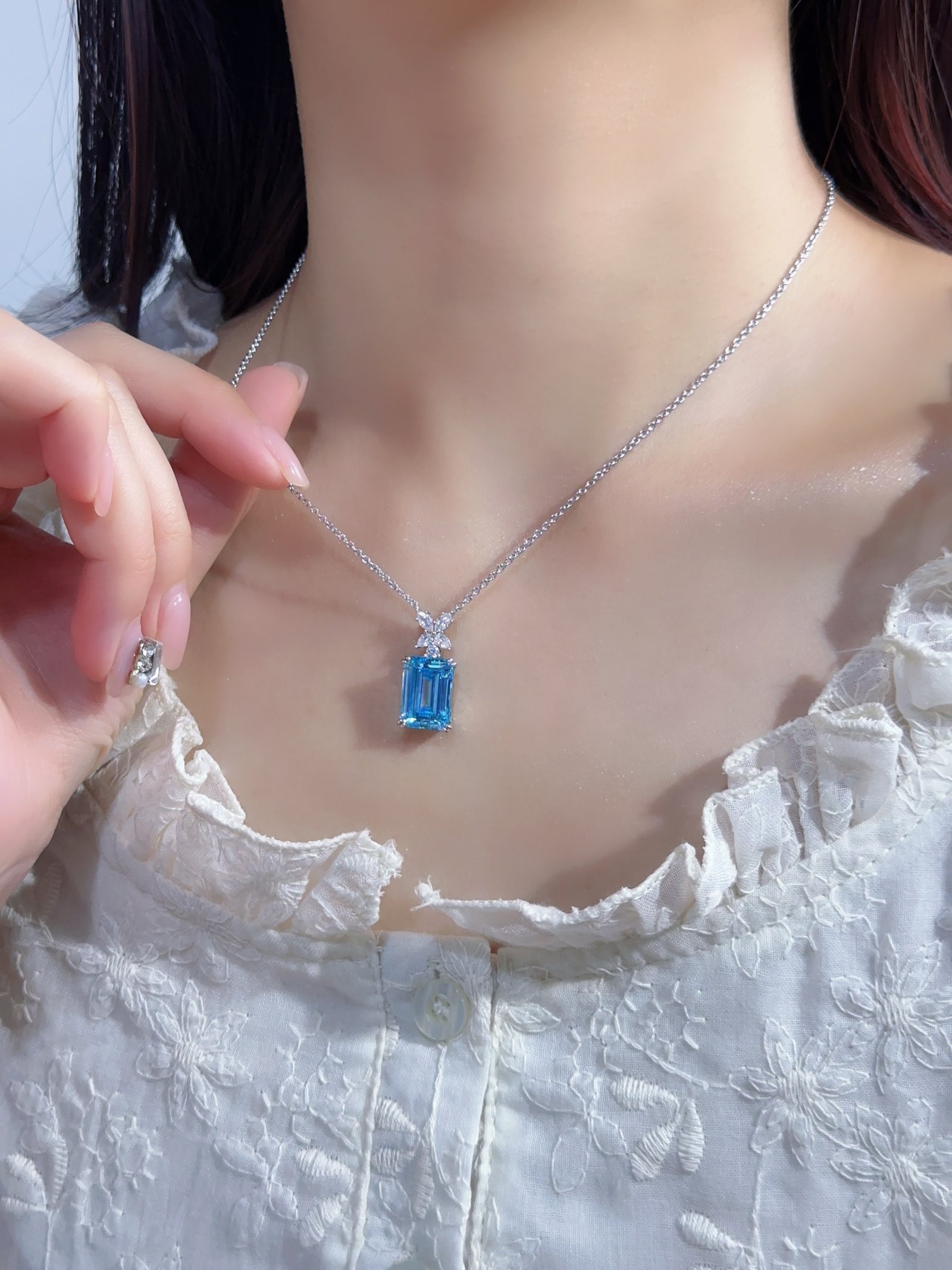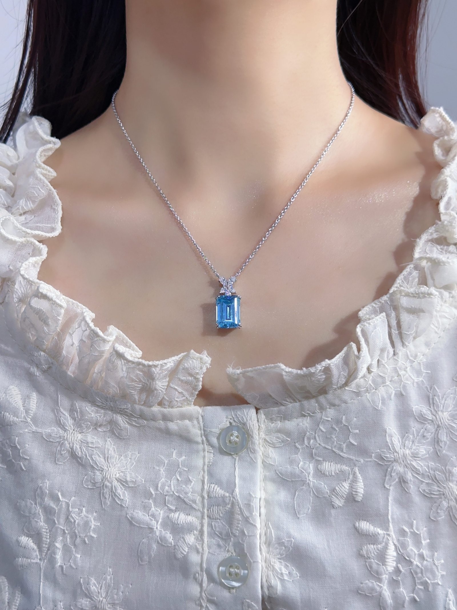 HW rectangular blue diamond necklace