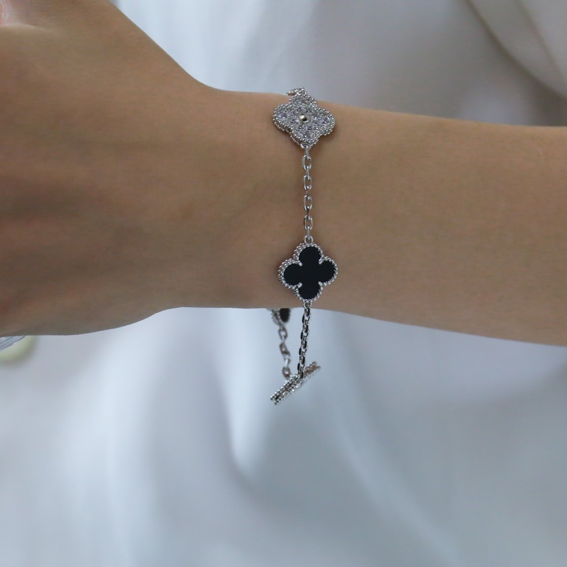 Interdiamond Black Agate Five Flower Bracelet