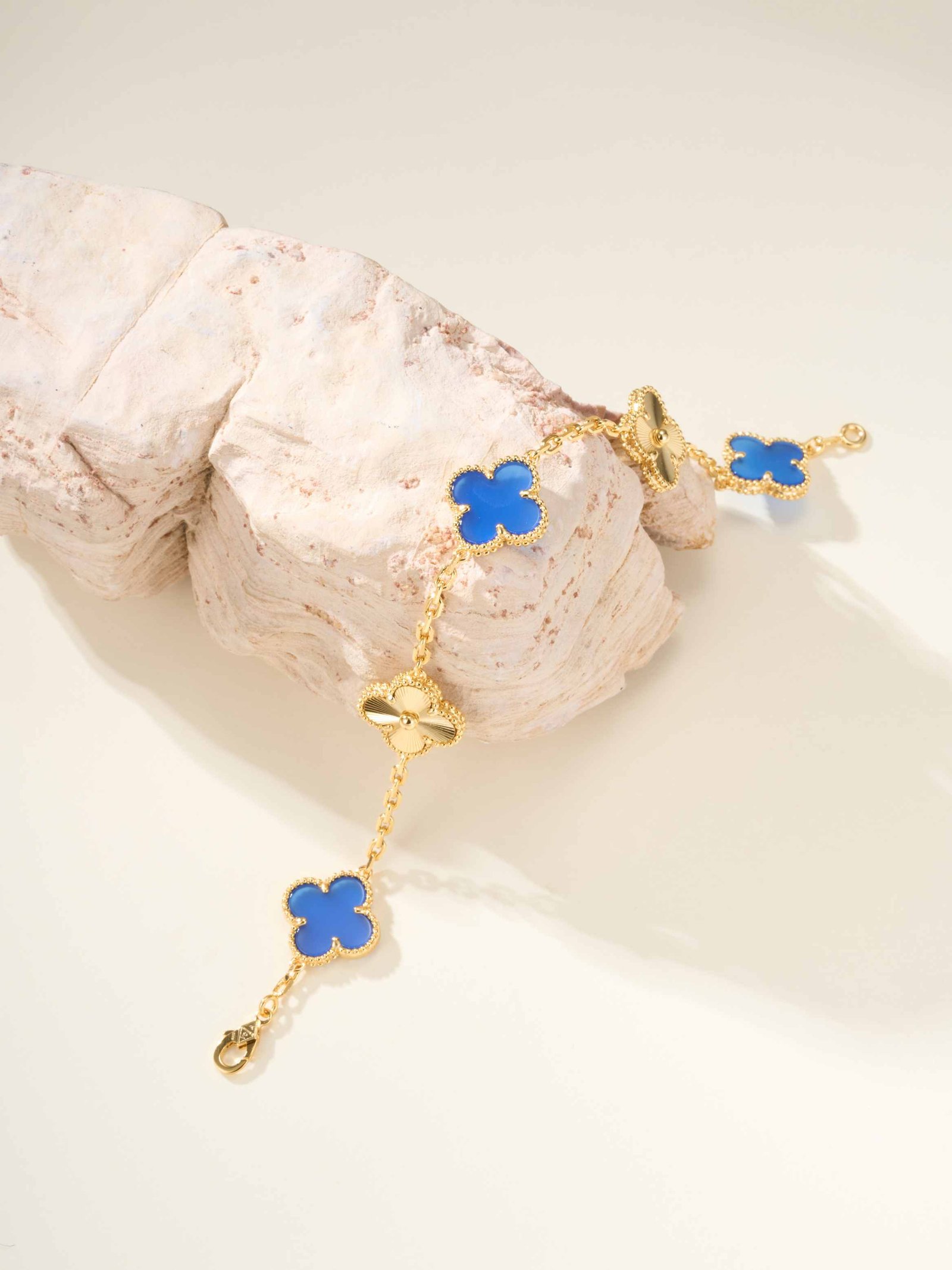 Vintage Alhambra Bracelet with 5 Flowers Gold Tiger Eye Stone