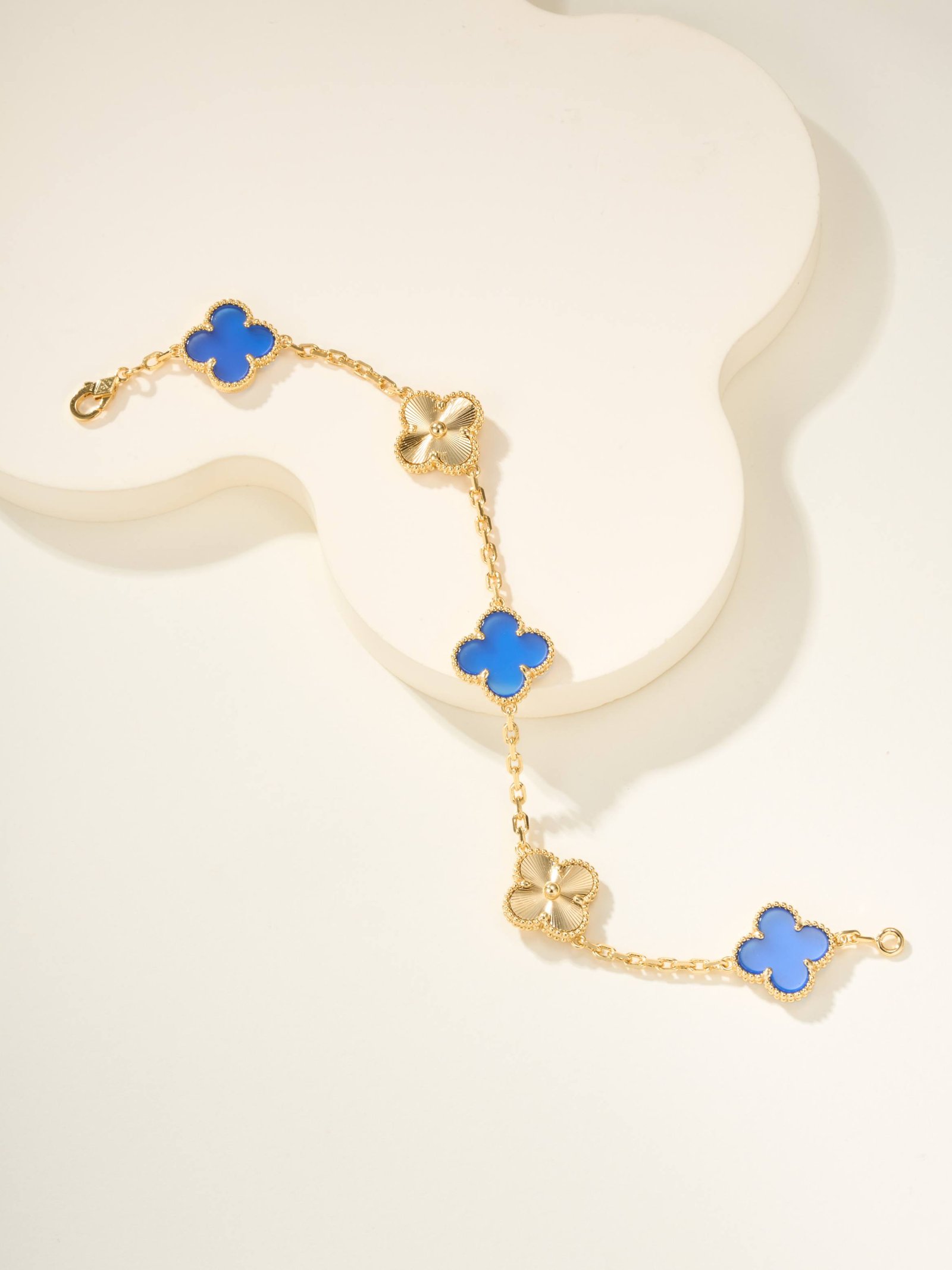 Ji Diao Diao Hua Pian Gold Blue Jade Marrow Five Flower Bracelet