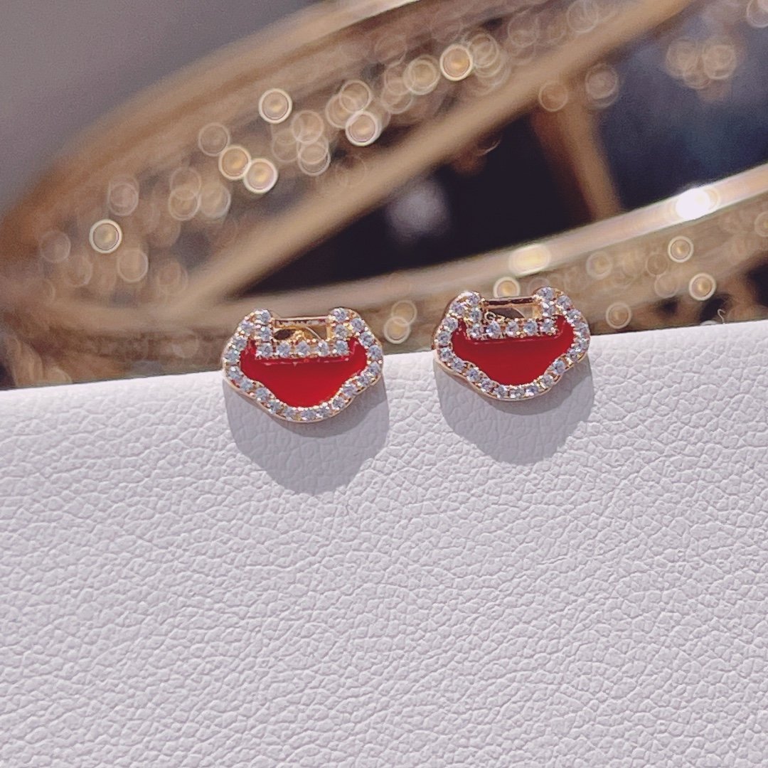 Qeelin enamel red diamond gourd earrings