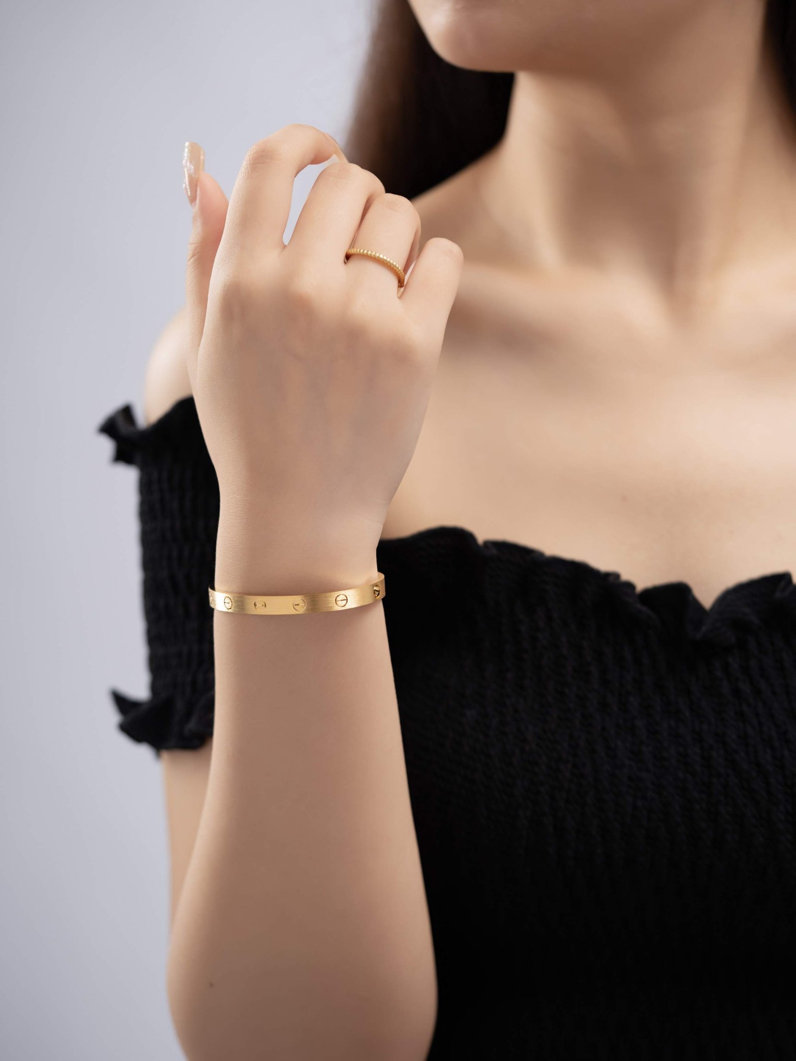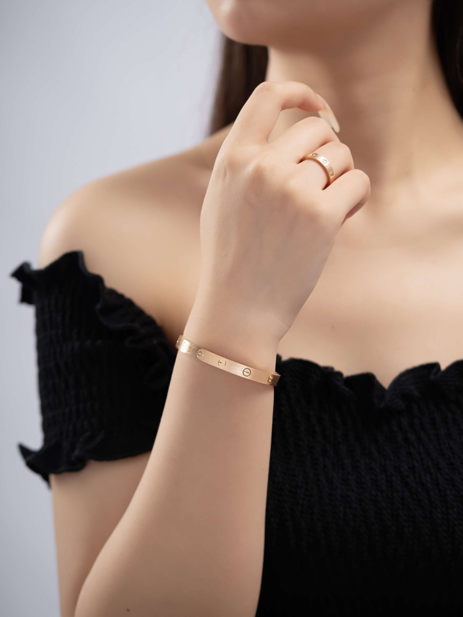 Love wide classic brushed surface diamond free bracelet