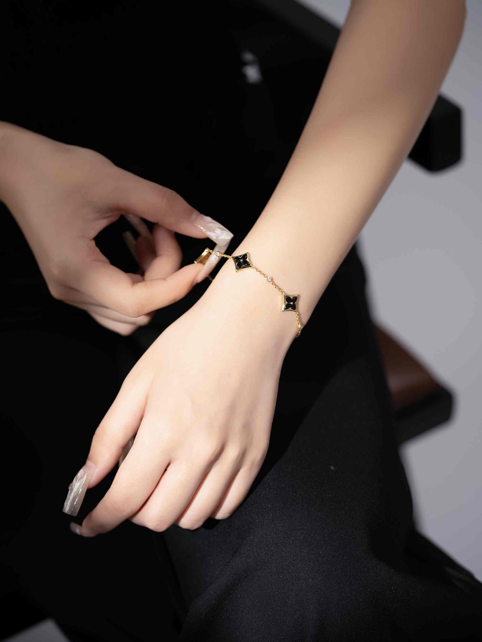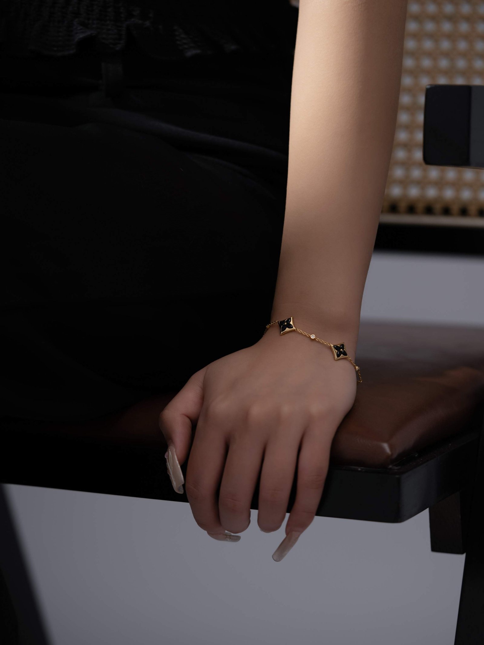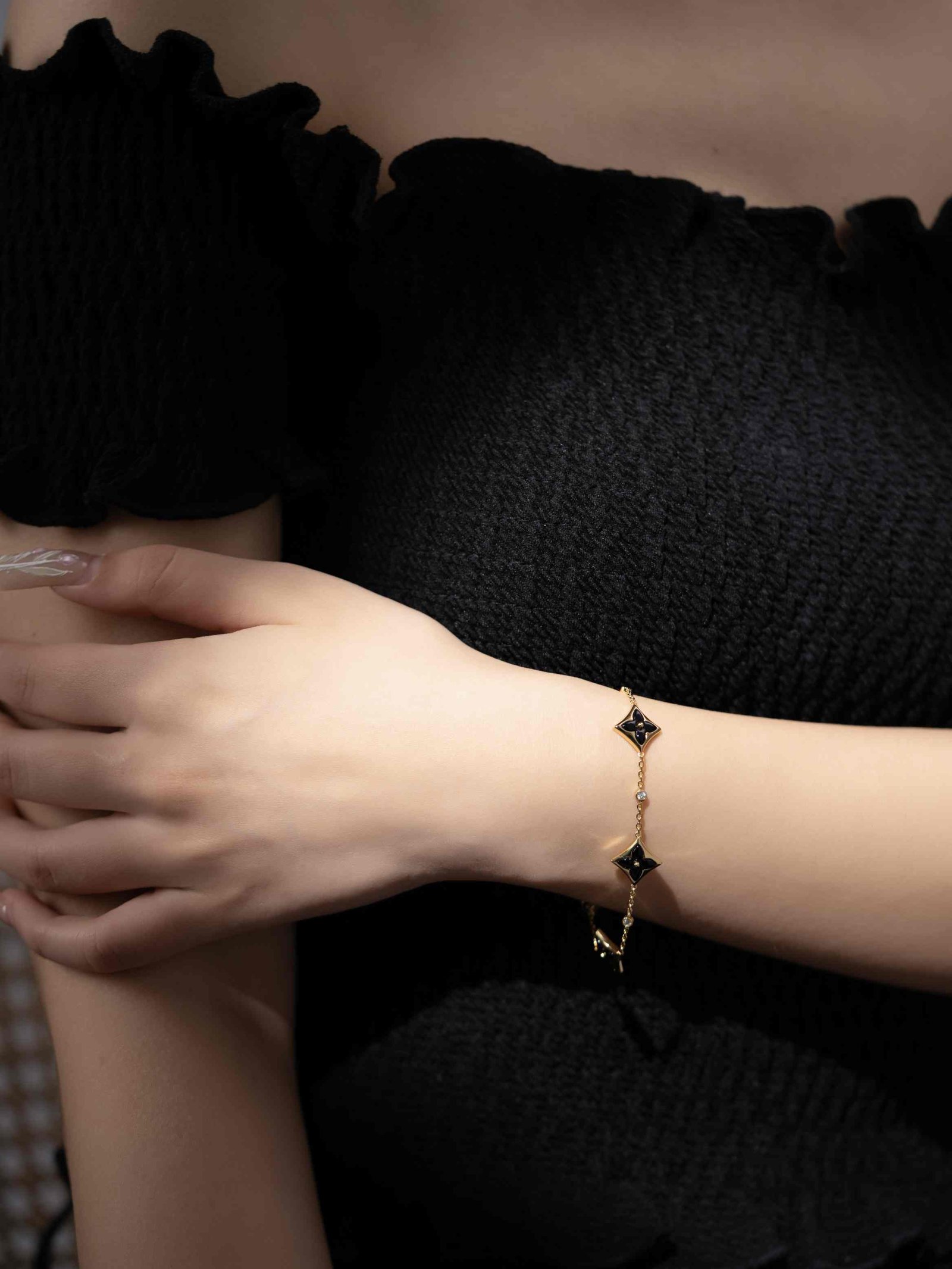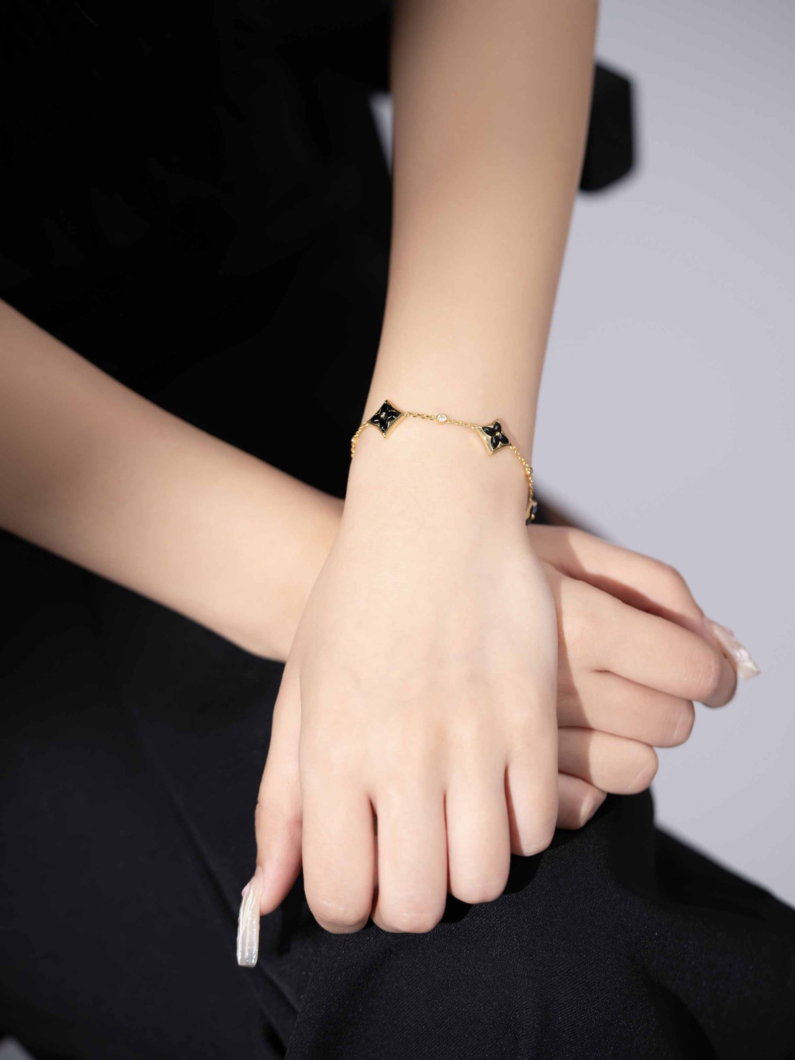 LV Classic Four Diamond Gold Black Agate 3-Diamond Bracelet