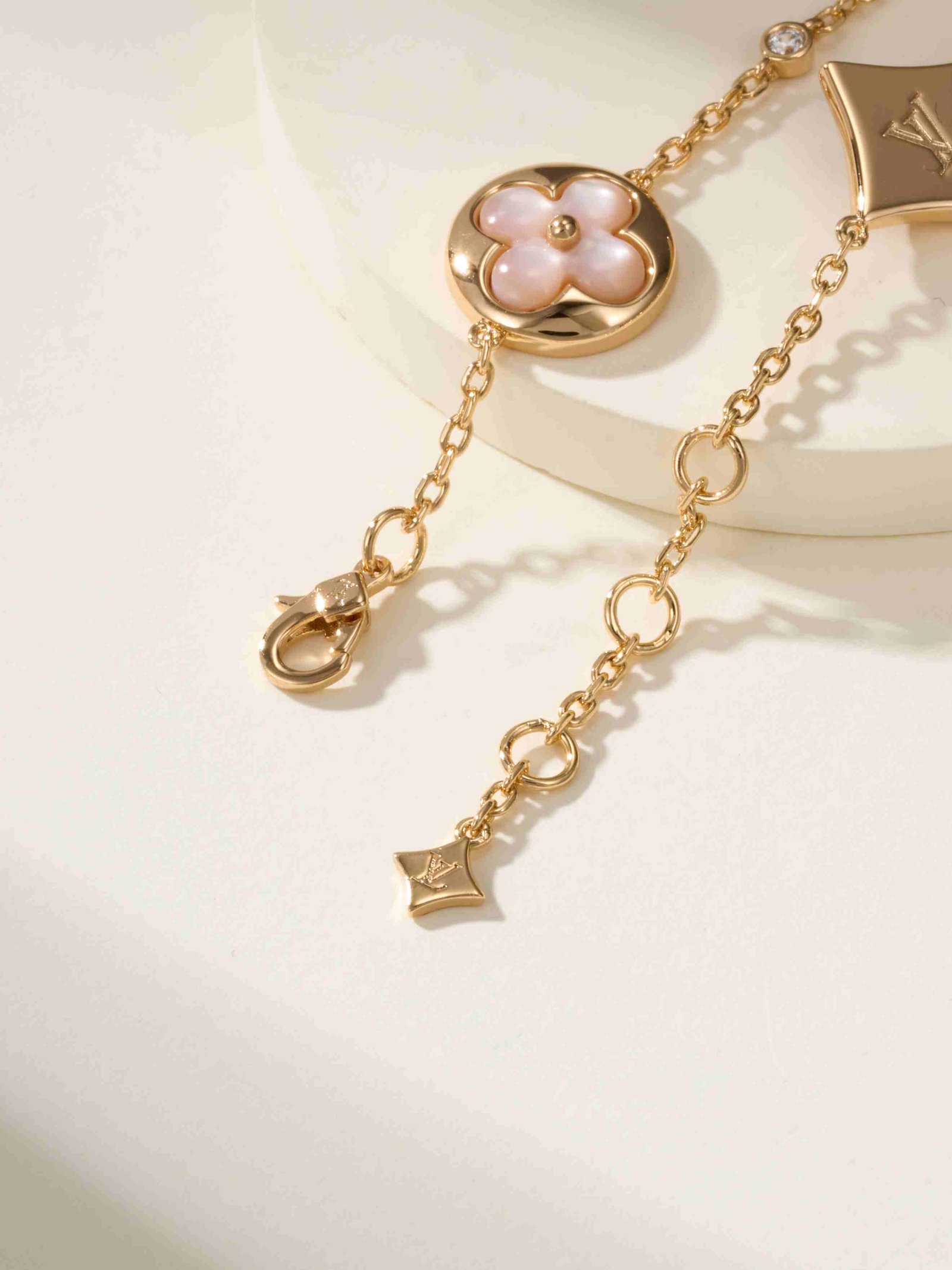 成为第一个“LV Classic Four Pollen Fritillaria 3-Diamond Bracelet (Rose Gold Pink Fritillaria)” 的评价者