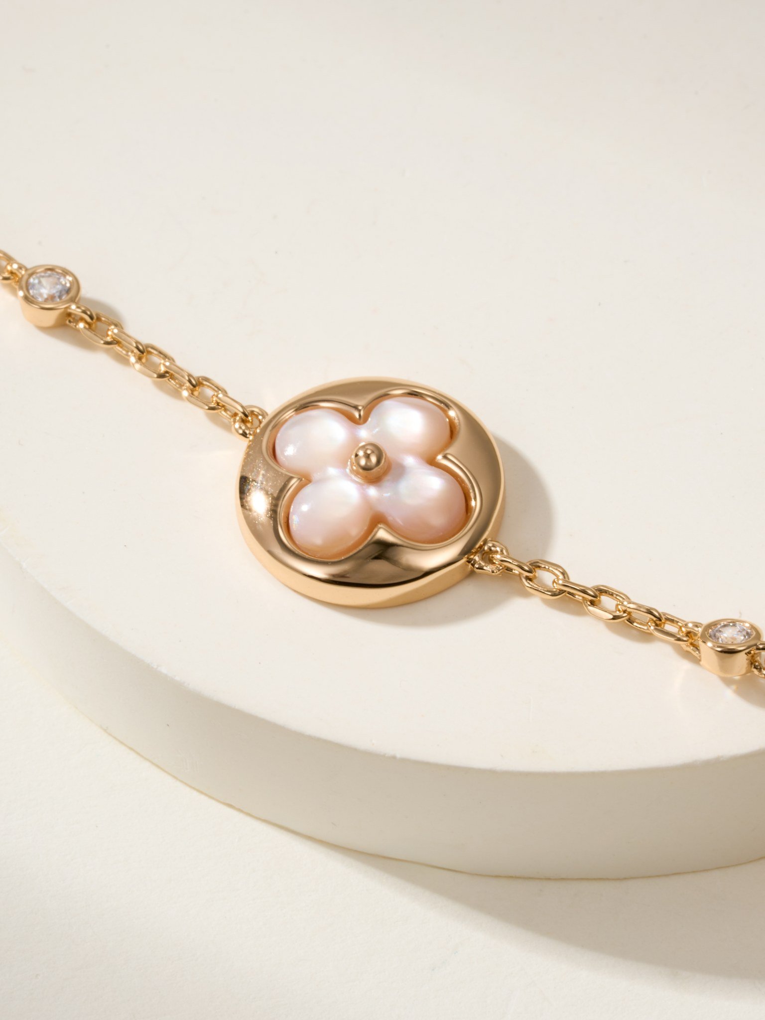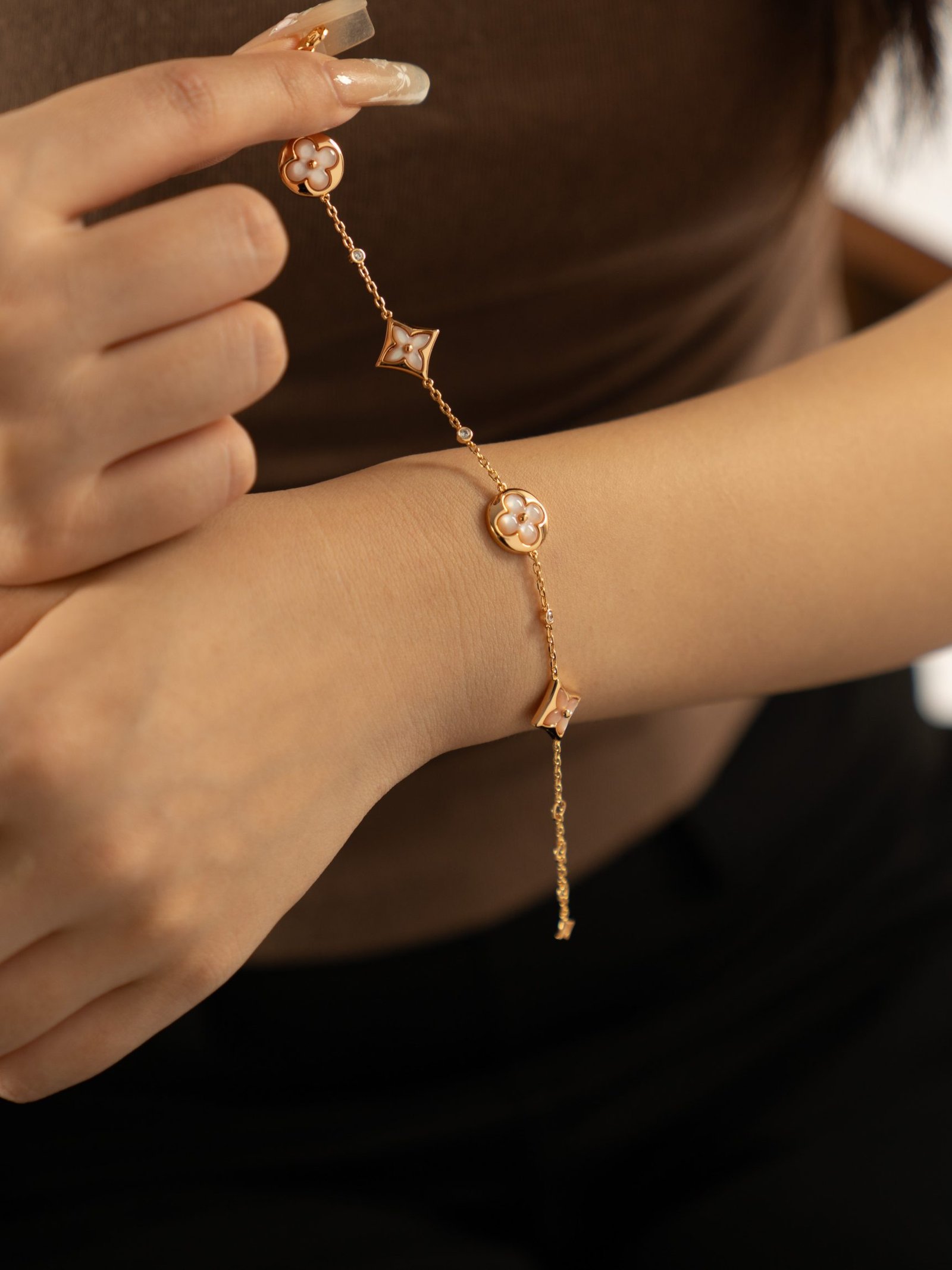 LV Classic Four Pollen Fritillaria 3-Diamond Bracelet (Rose Gold Pink Fritillaria)