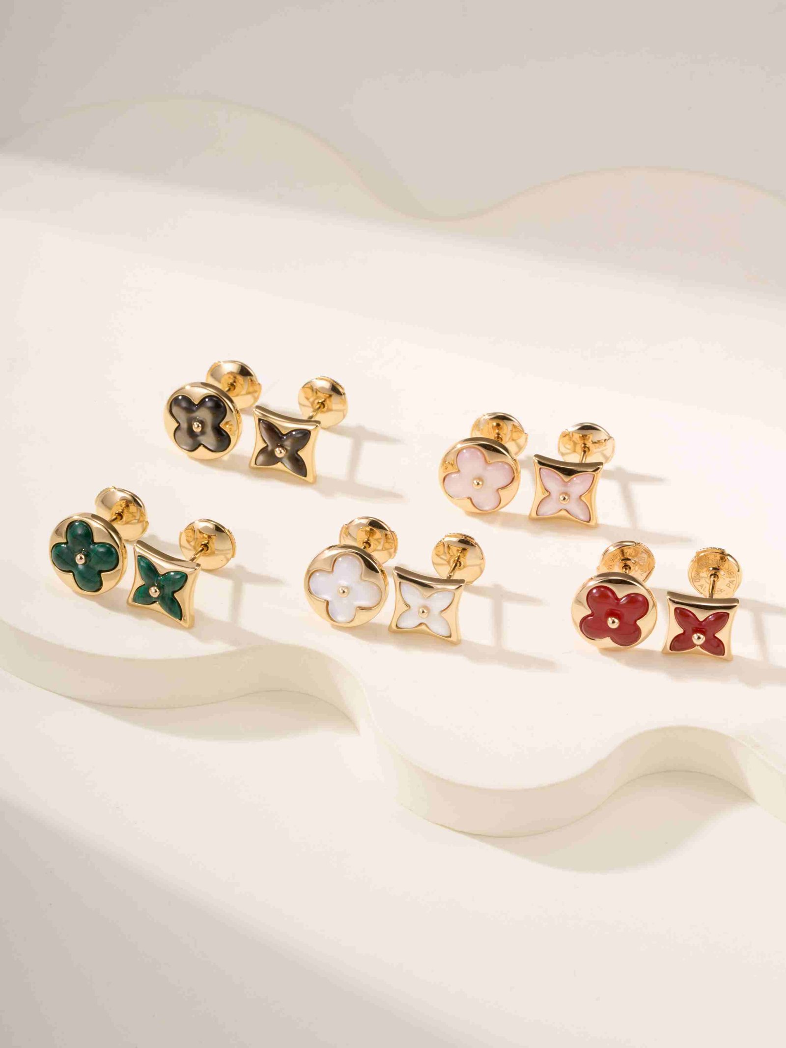 LV Classic Four Flower Peacock Stone 3-Diamond Bracelet (Rose Gold Peacock Stone)