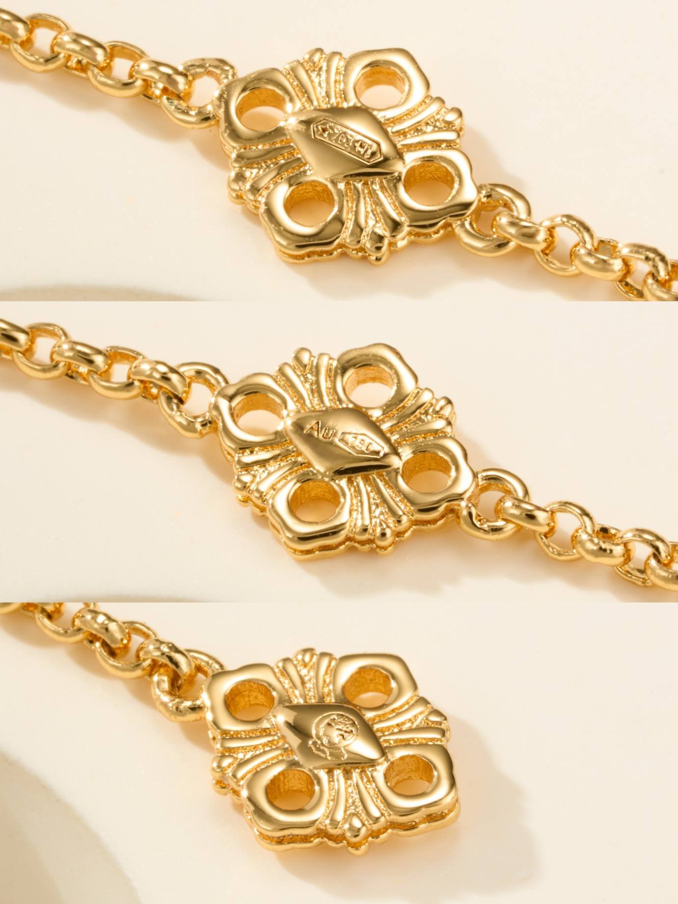 BU Opera Series Gold 3-Pattern Single Flower White Beimu Bracelet (Small)