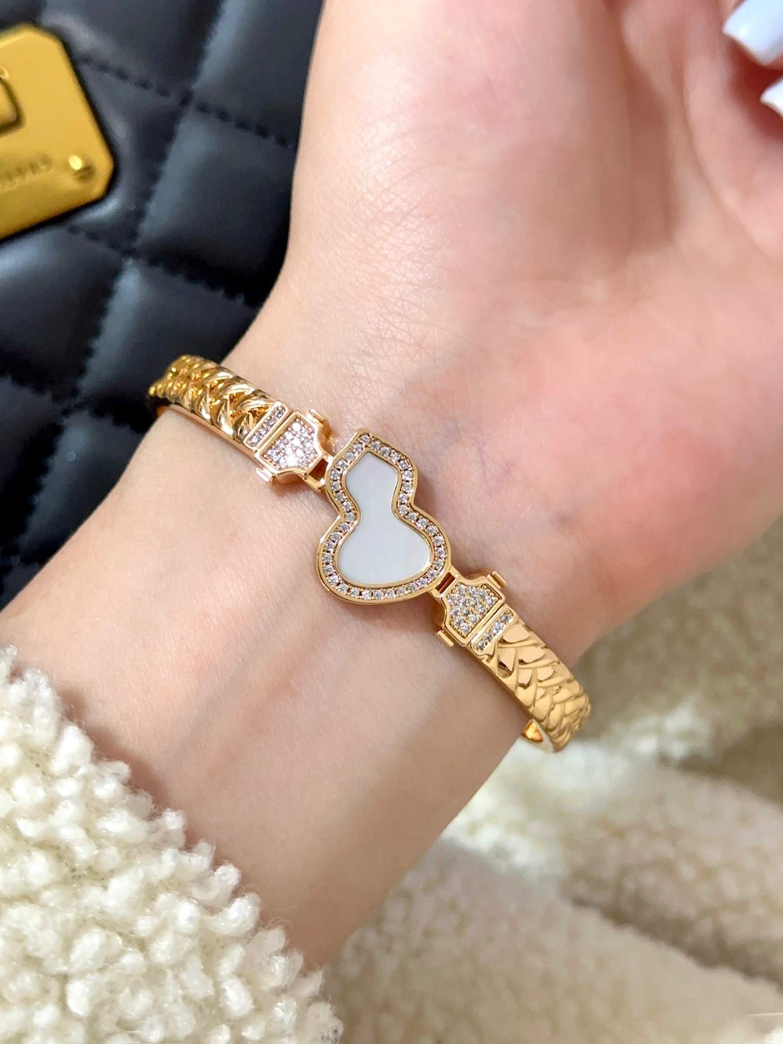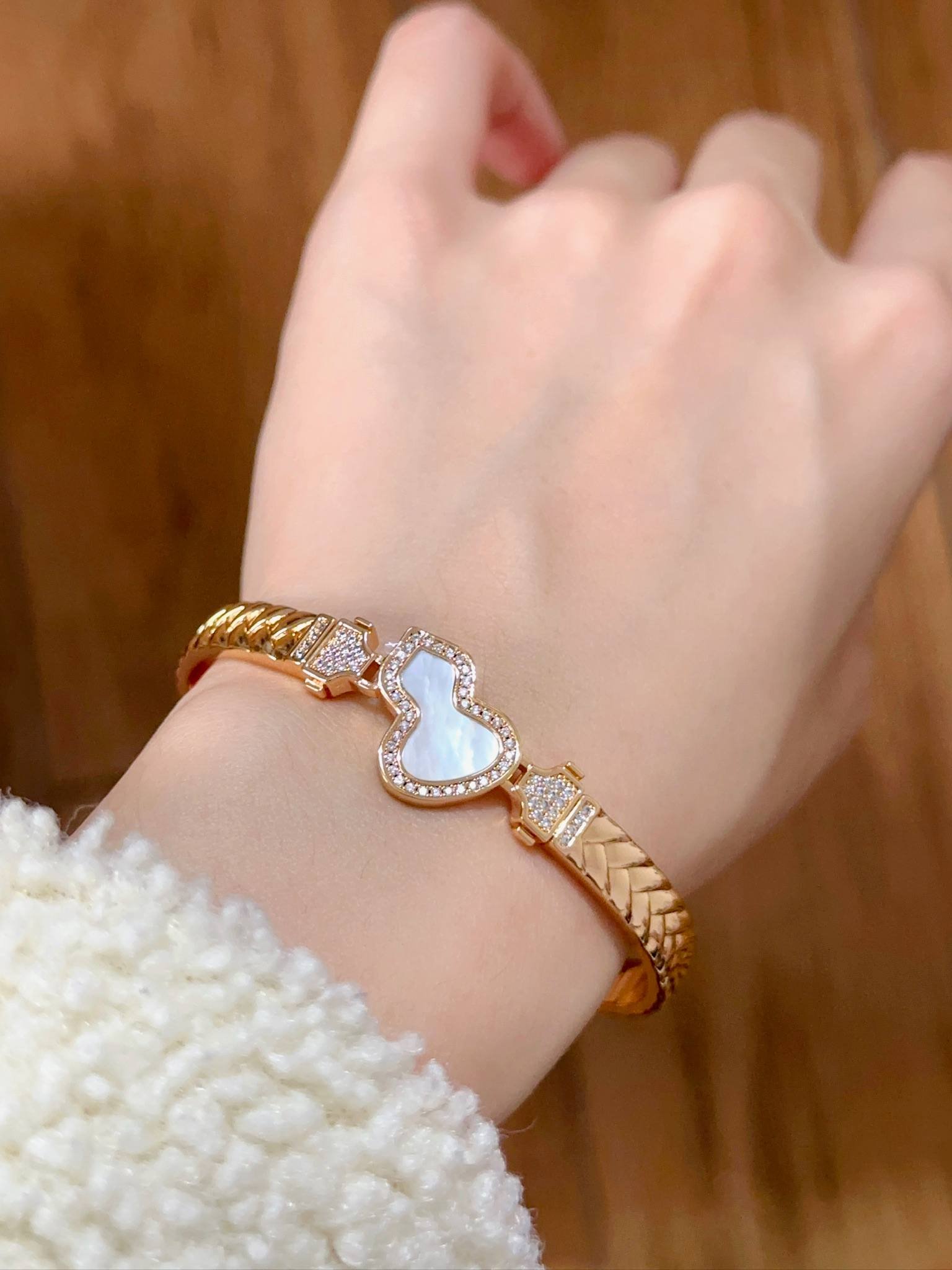 QE Gourd Hollow Inner Diamond Rose Gold Bracelet