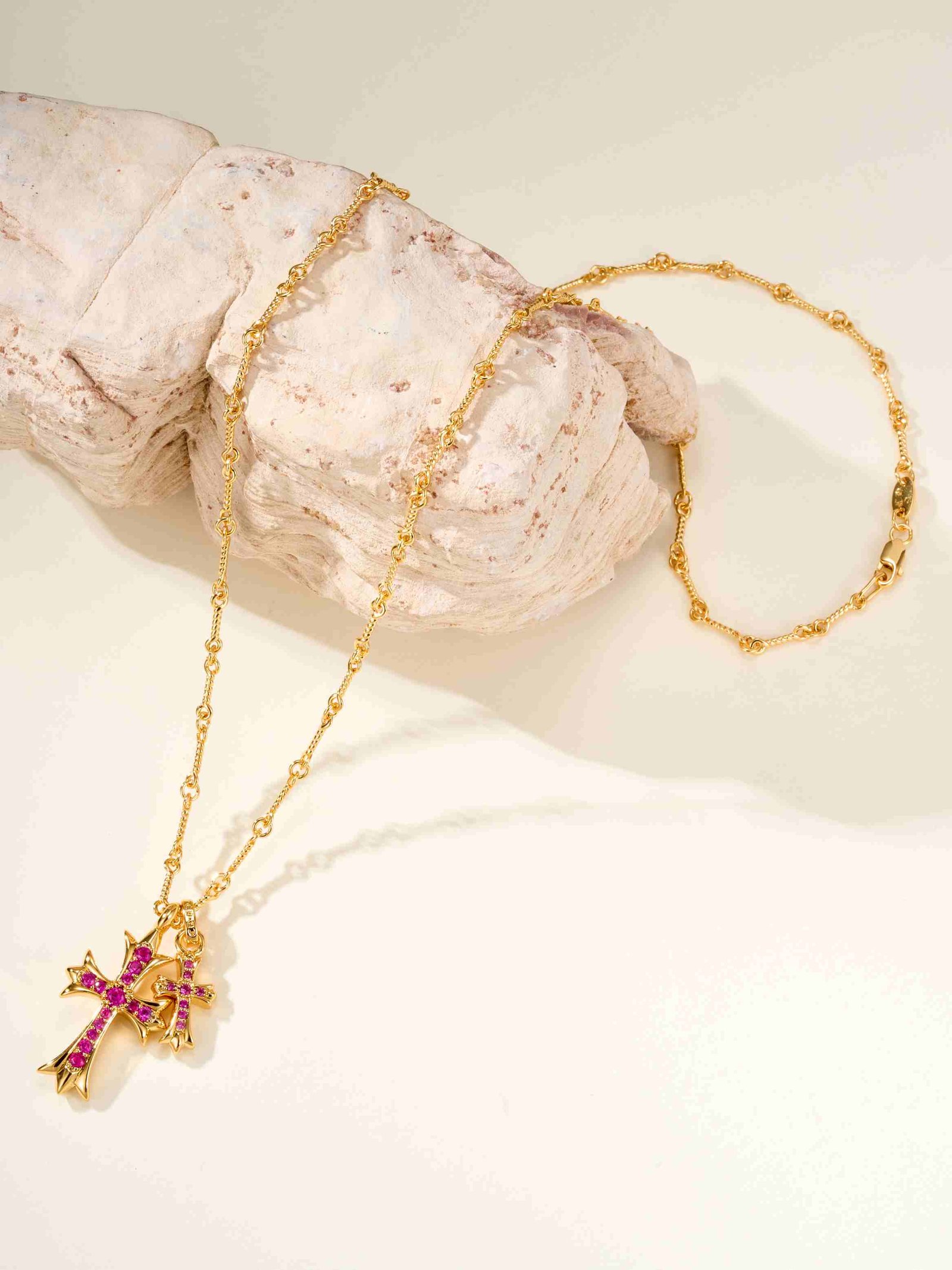 Red Diamond Double Cross Necklace
