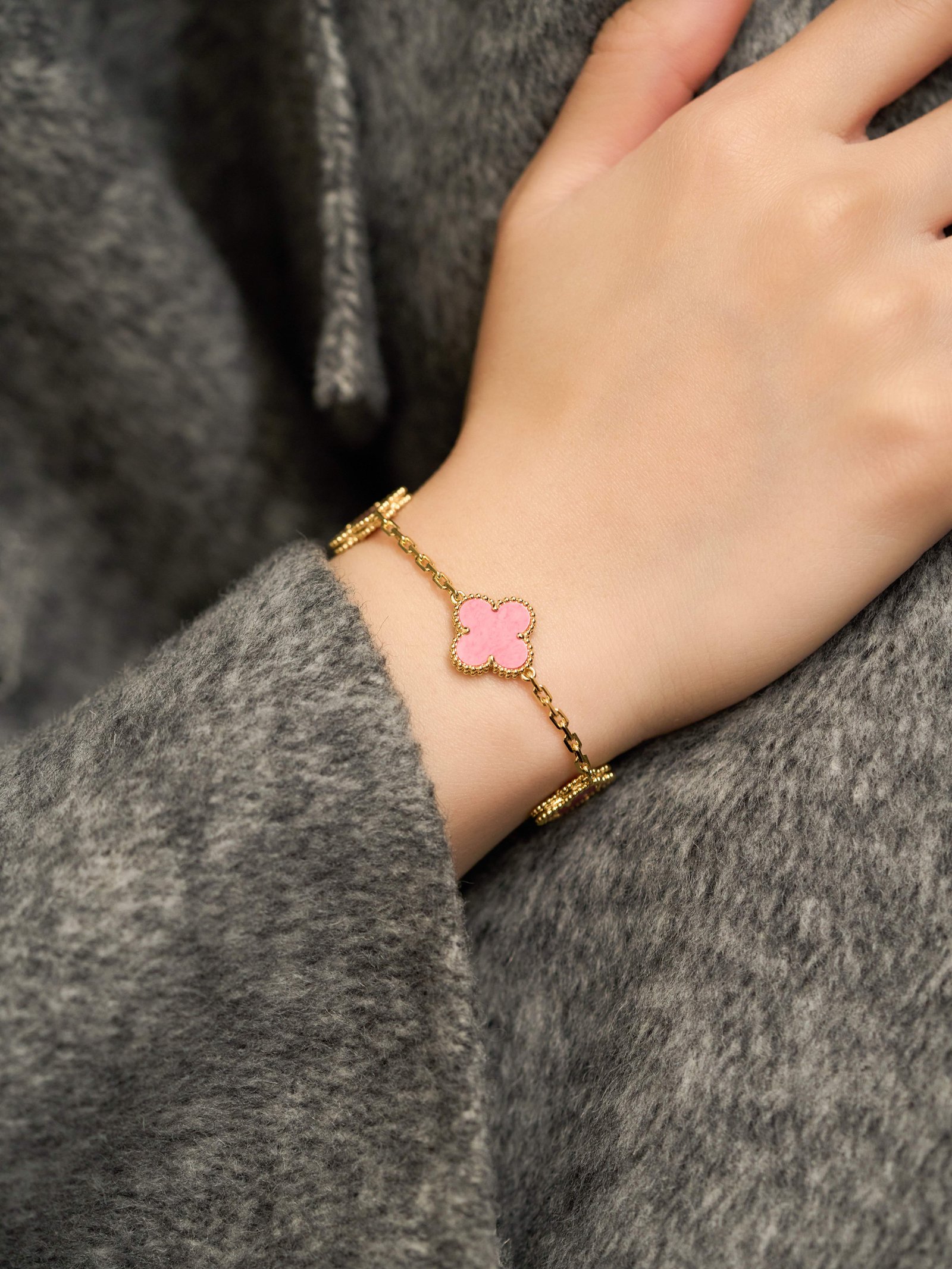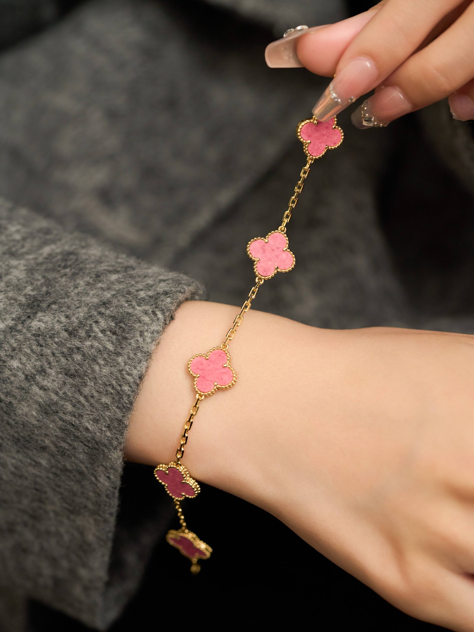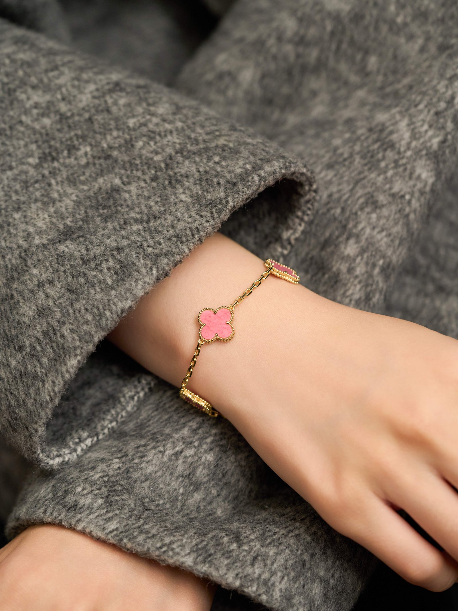Rose Stone Five Flower Rose Gold Bracelet