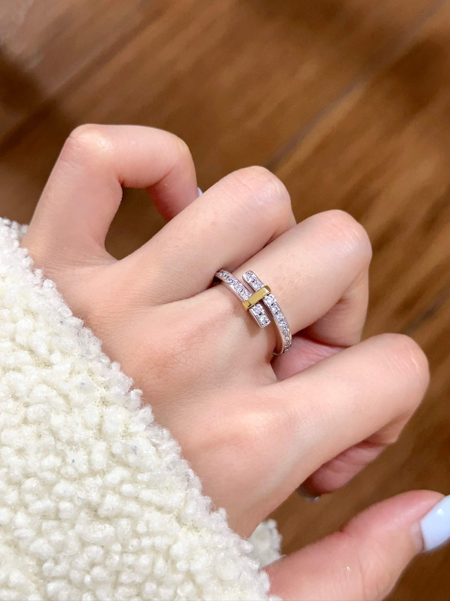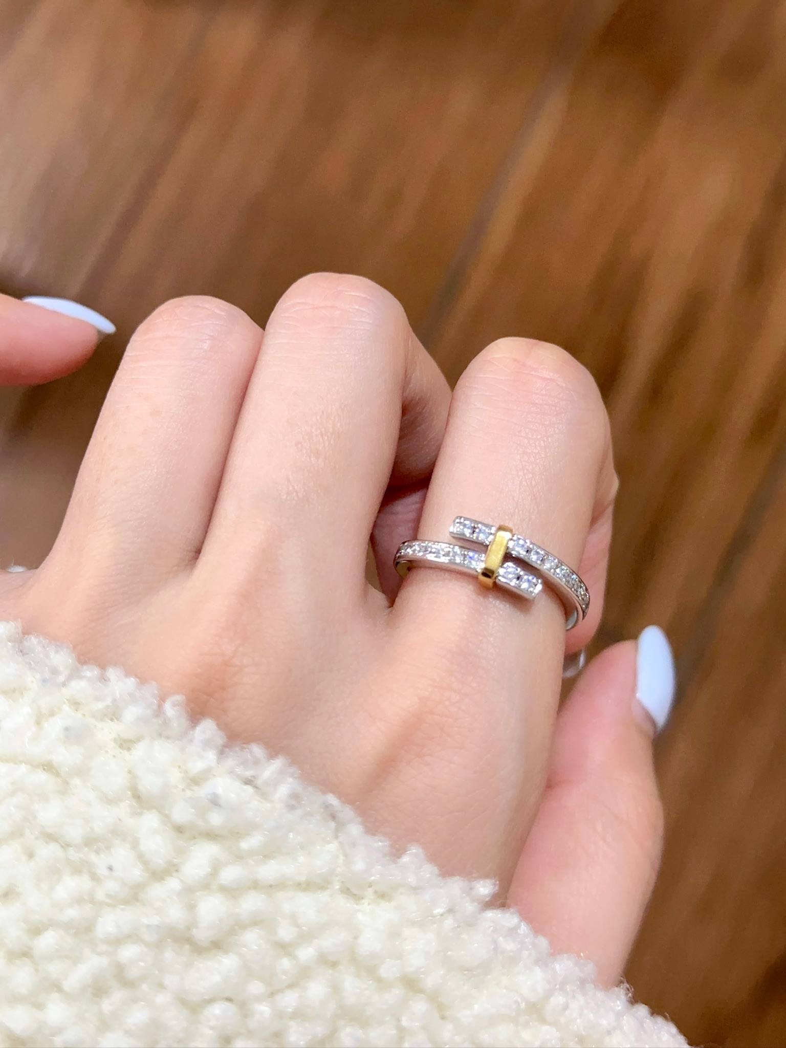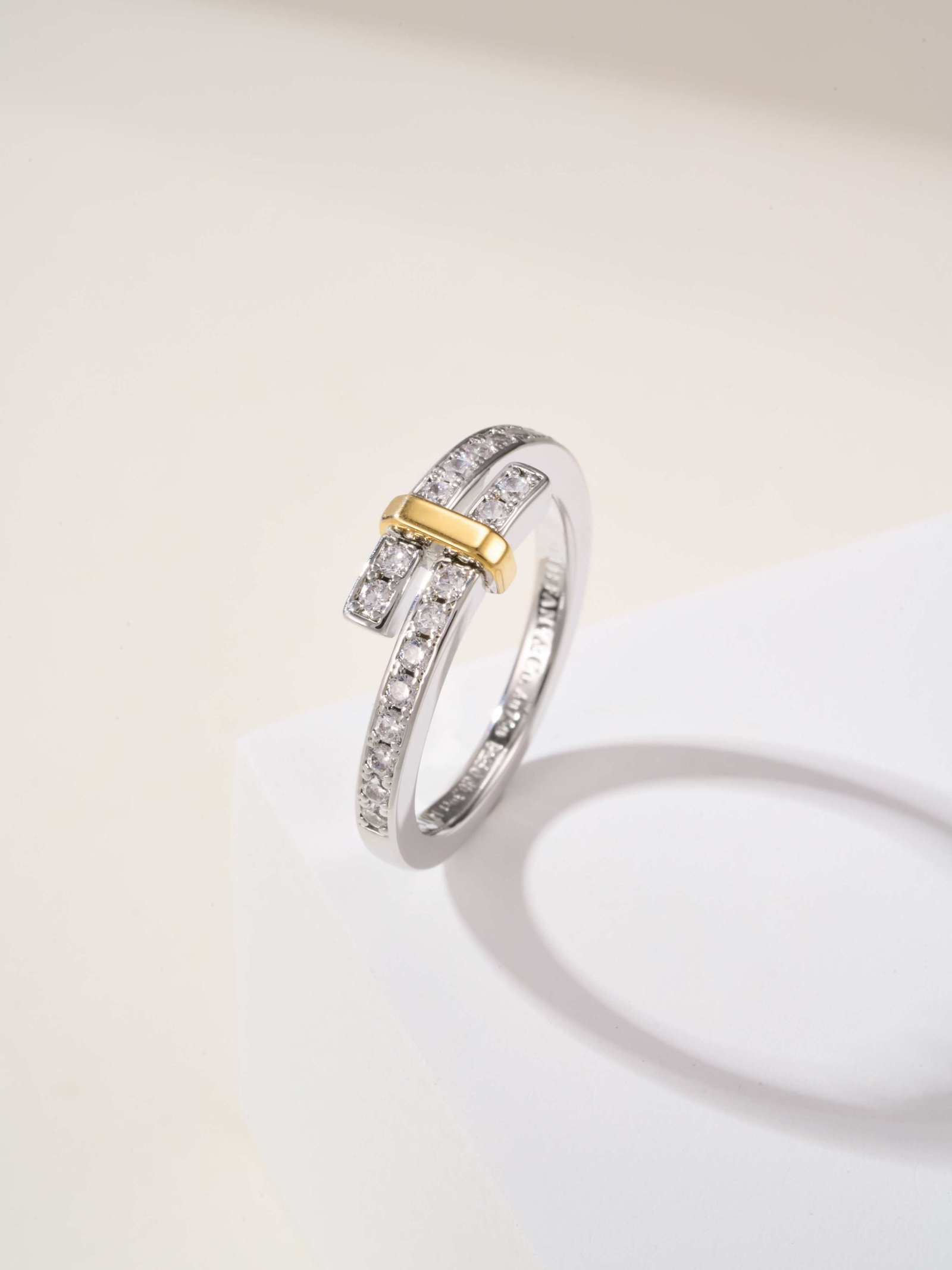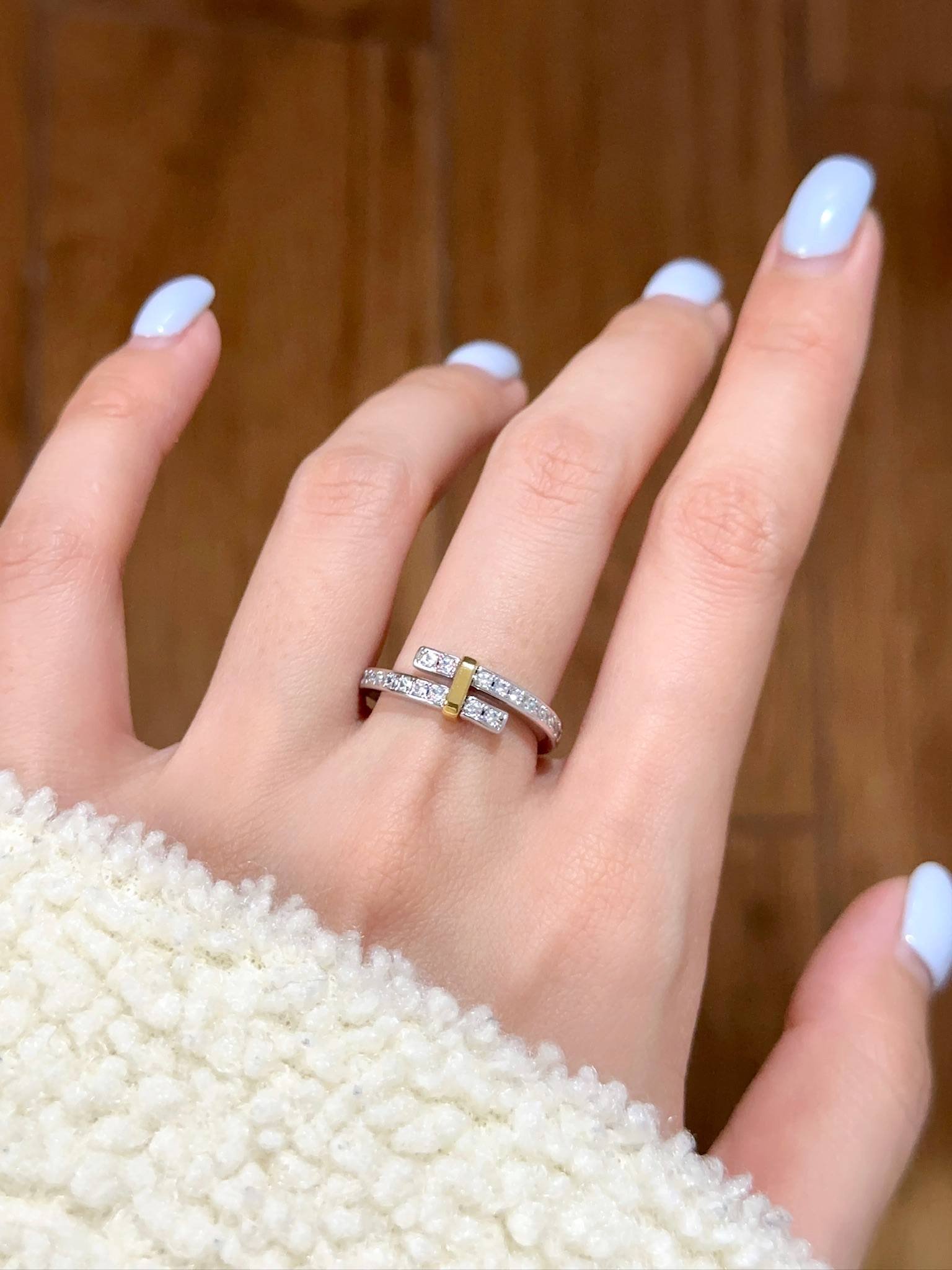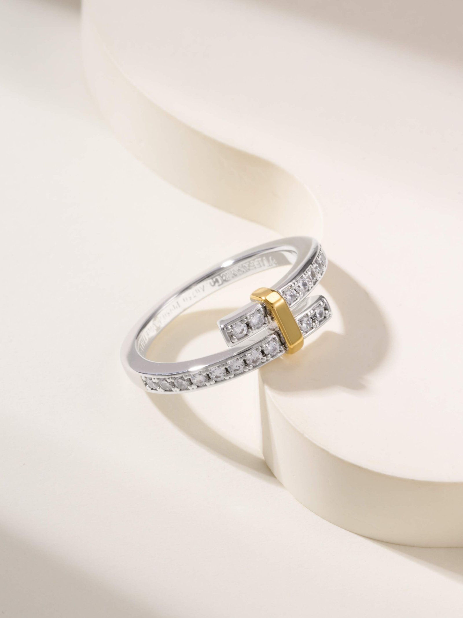 T Edge Diamond Lined T Ring