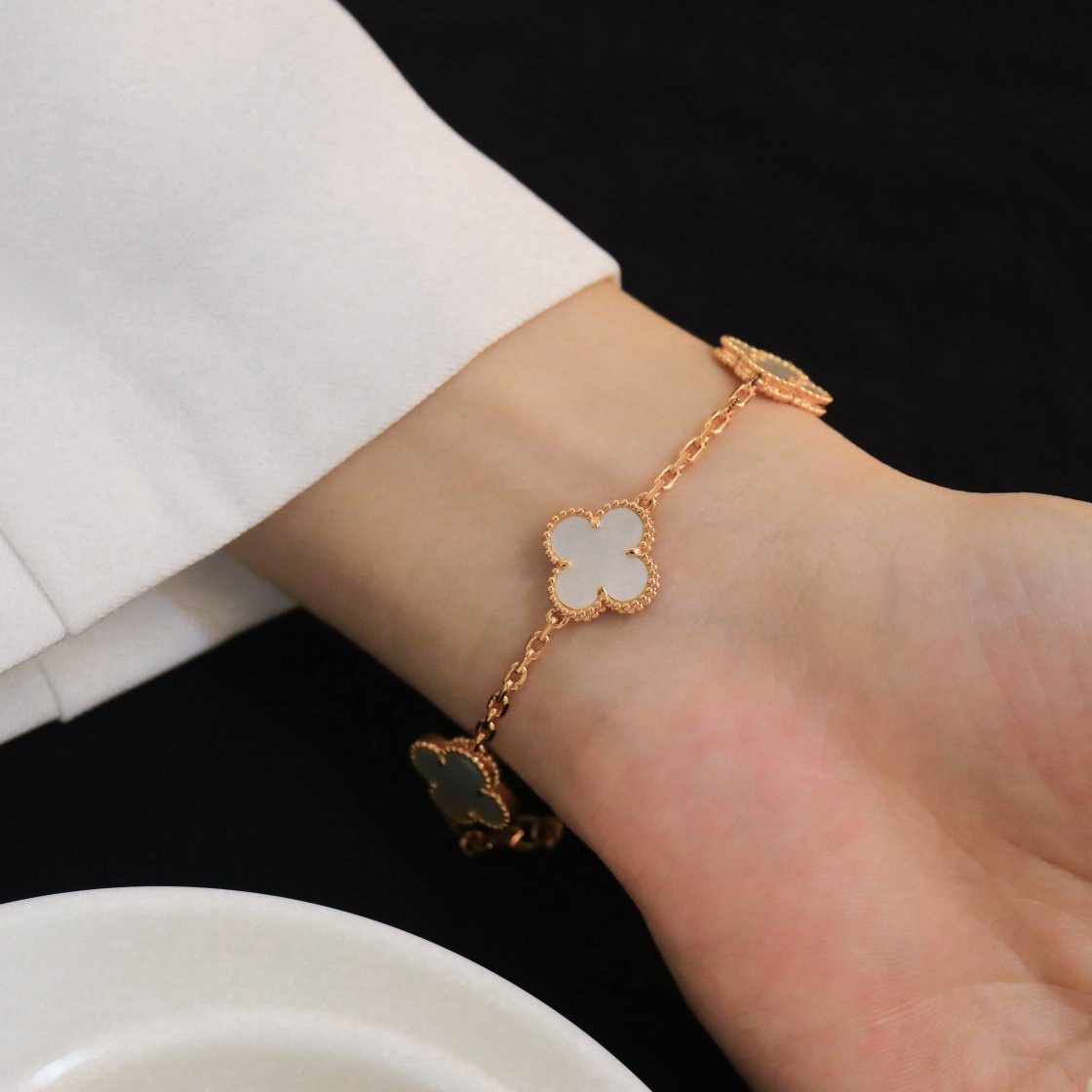 Vintage Alhambra bracelet with 5 flower white shells