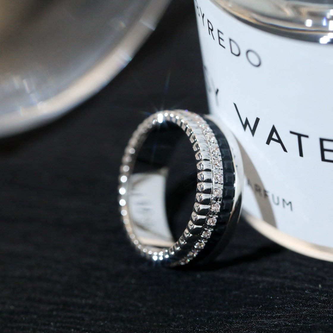 Be the first to review “Wide diamond studded black ceramic ring”
