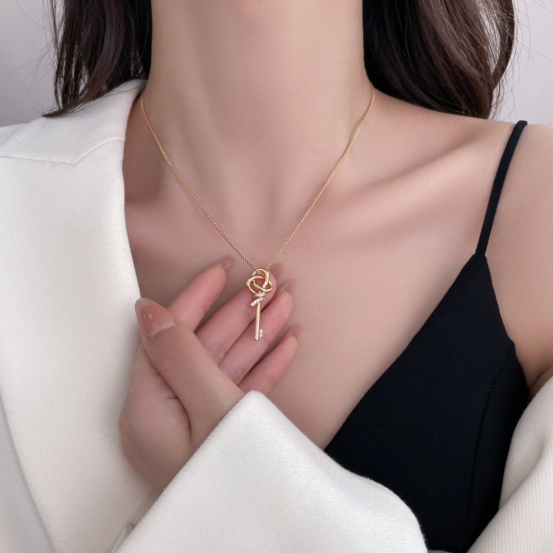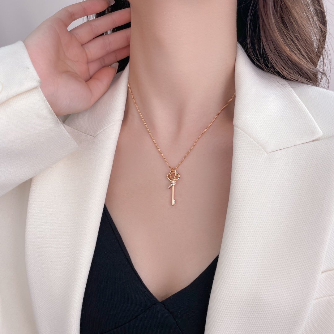 Woven Series Small Diamond Set Key Necklace